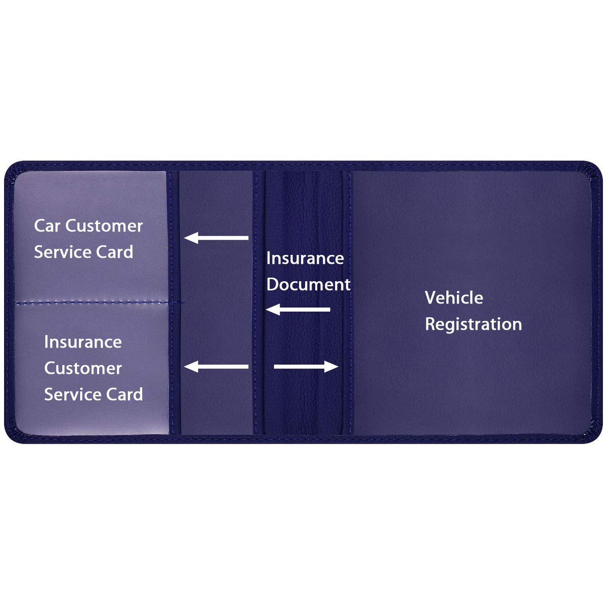DescriptionWisdompro car document holder is specially designed with 5 different size clear pockets - 2 on the right for storing insurance and registration papers, and 3 on the left for various cards like gas cards, membership cards, business cards, emergency information and etc. Folio compact design with clear classification makes your key items accessible at a glance without digging the scattered glove compartment!All the PVC opening edges are trimmed with PU leather for comfort usage while the sewing process on the premium PU leather make this folder more durable.Dimensions:Folded - 9.5'' x 5.1''(24cm x 13cm)Open - 9.5'' x 10.2''(24cm x 26cm)Wisdompro Retail Package includes:1 x Car Registration HolderWisdompro Customer Satisfaction Warranty:If you encounter issues with any Wisdompro product, please do not hesitate to contact us, we will be happy to help you solve it.