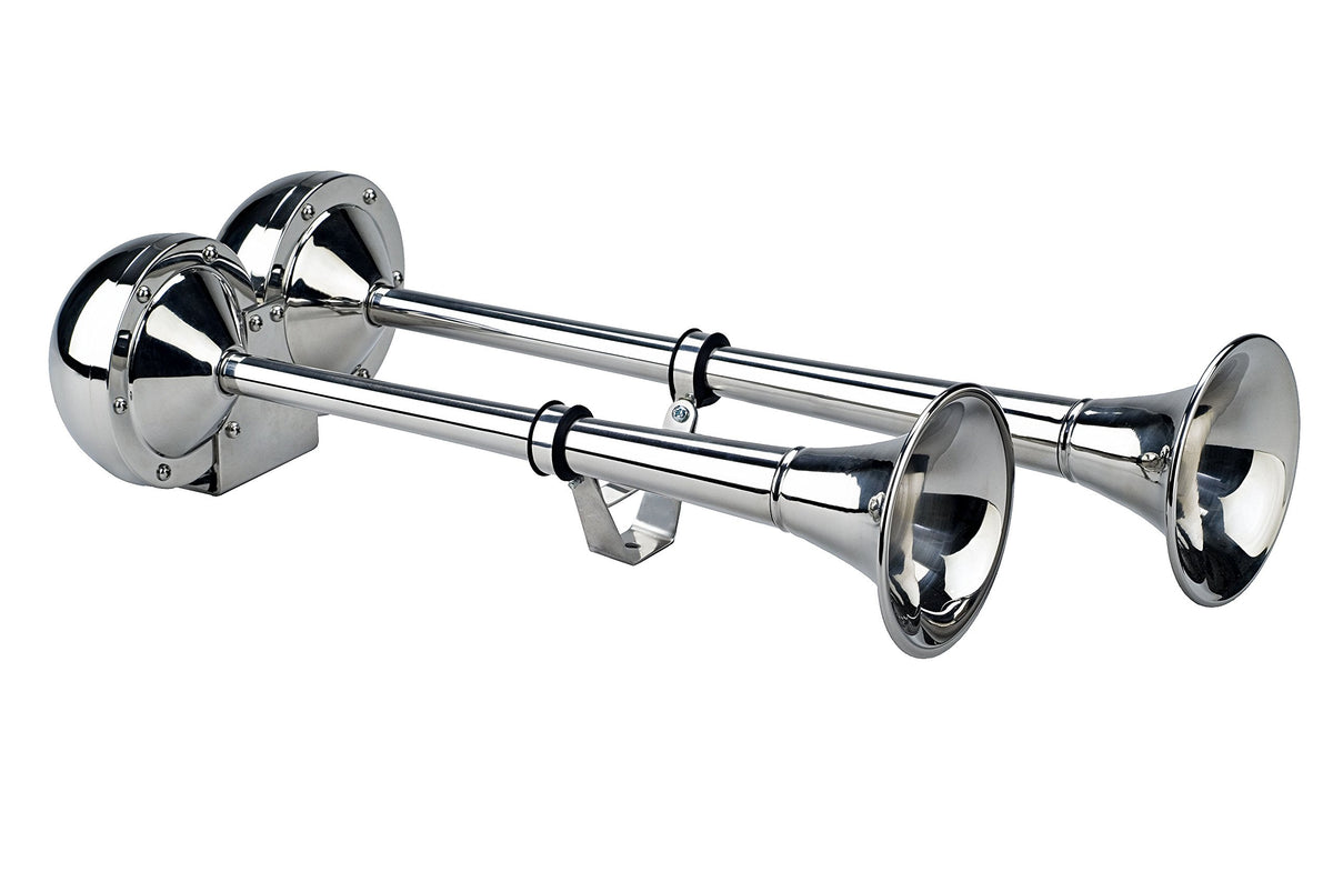 Wolo (125) The Dominator Stainless Steel Dual Trumpet Marine Horns - 12 Volt, Low And High Tone (125-12), Chrome