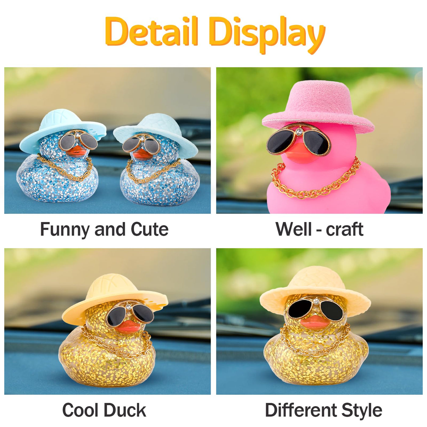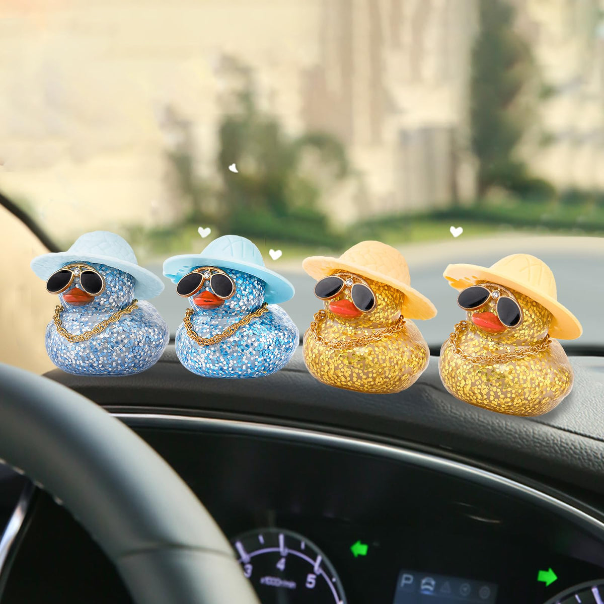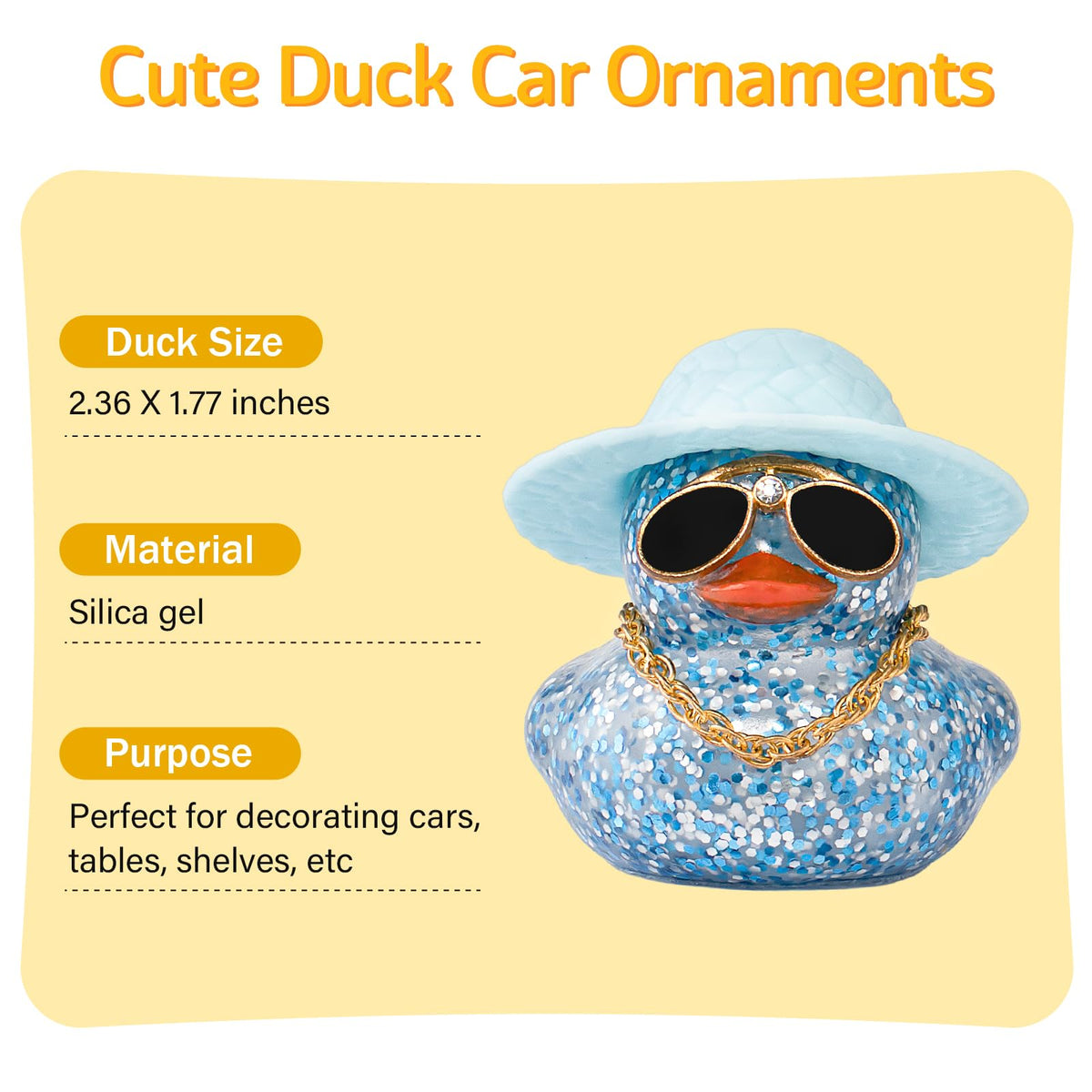 wonuu Car Dashboard Rubber Duck Ornament, Car Decoration Colour Ducks Accessories with Mini Hat Necklace and Sunglasses, G-Blue-