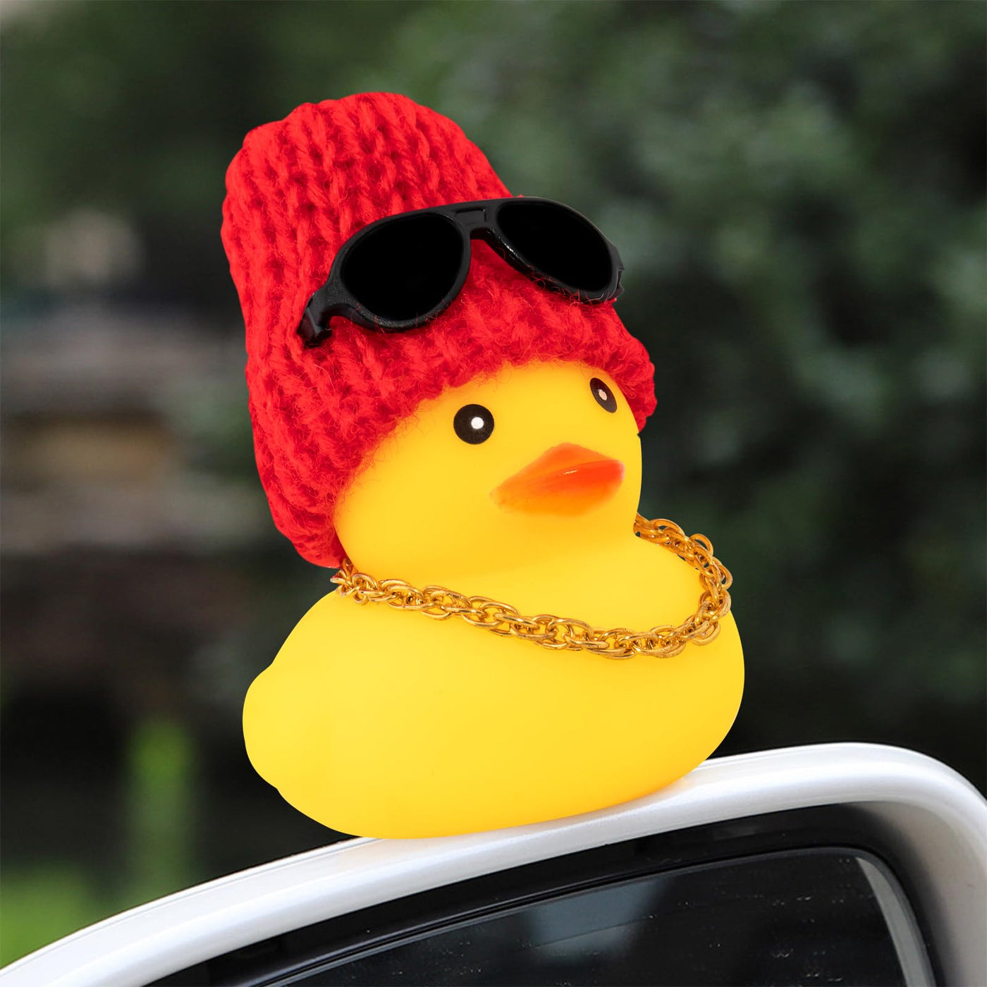 Wonuu Rubber Duck Car Ornaments Yellow Duck Car Dashboard Decorations With Propeller Helmet For Christmas Decor And Home Decorations For Adults (U-Red)