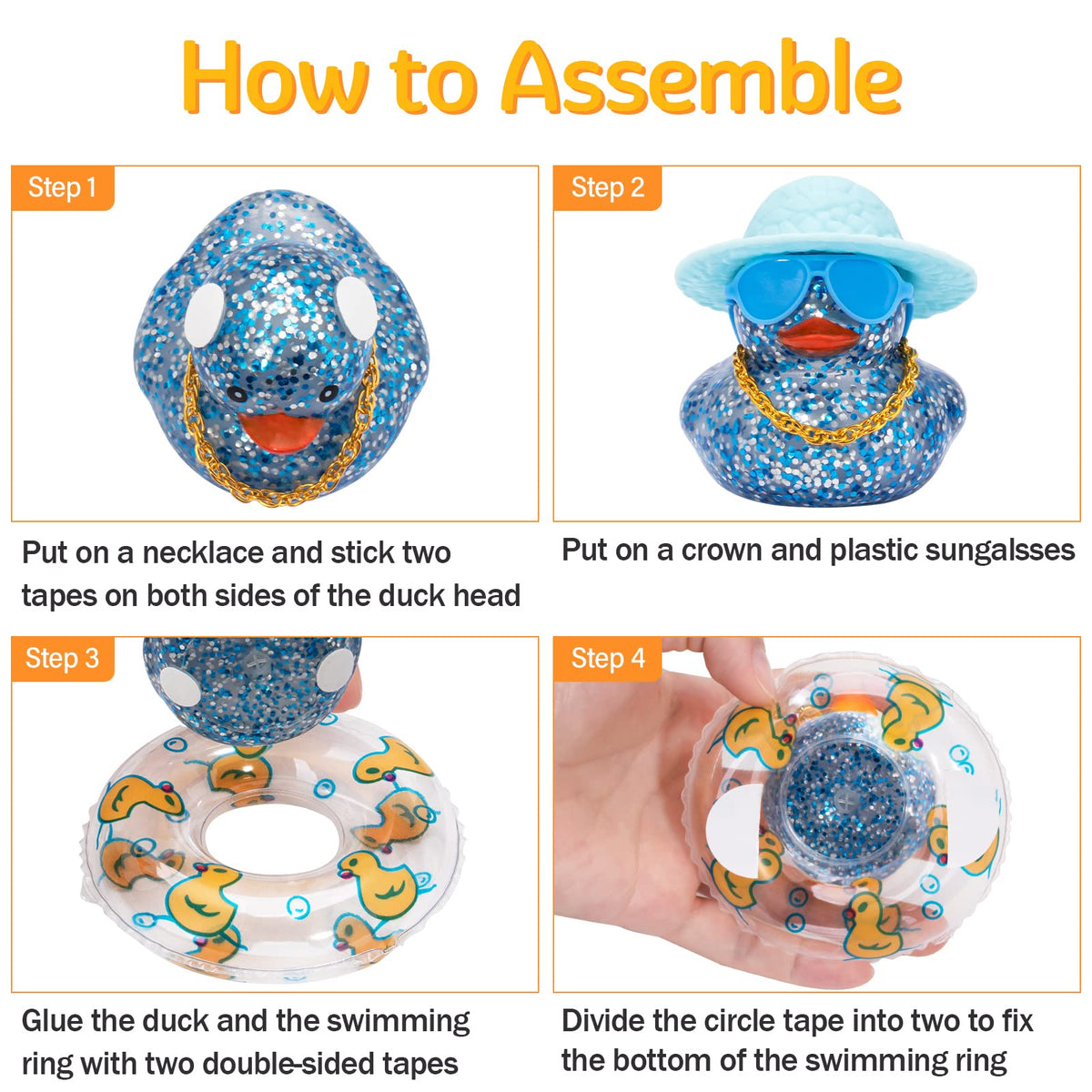 Wonuu Shining Rubber Ducks With Plastic Sunglasses Swim Ring Necklace Hat, Glittering Cute Car Accessories Car Decor Dashboard D