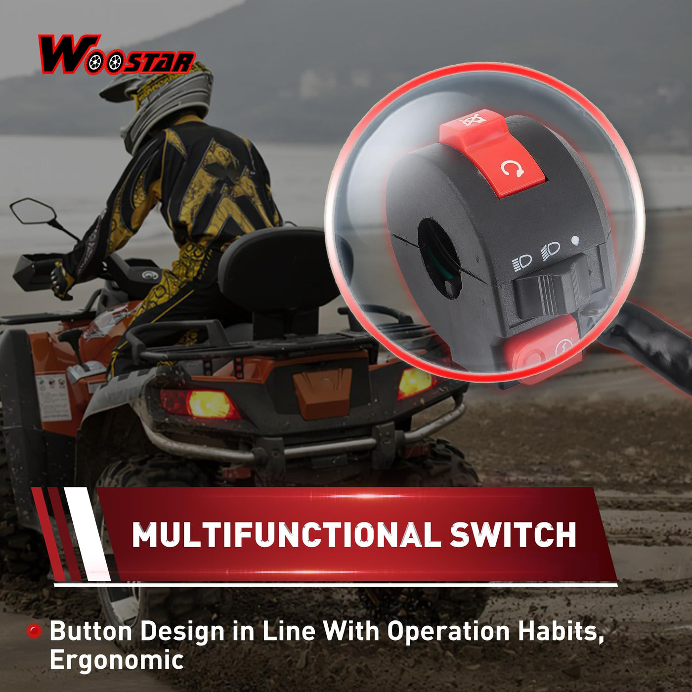 WOOSTAR 7/8'' 22mm Handlebar 3 Function Right Start Switch Replacement for 50cc 70cc 90cc 110cc 125cc ATV Quad Pit Bike Buggy Go