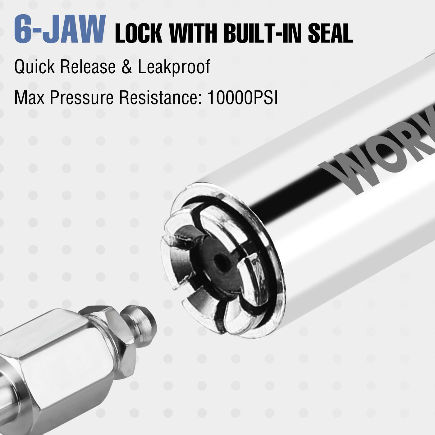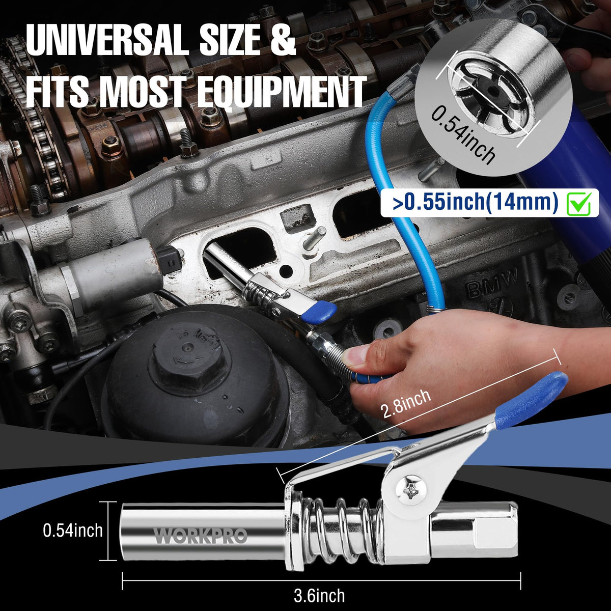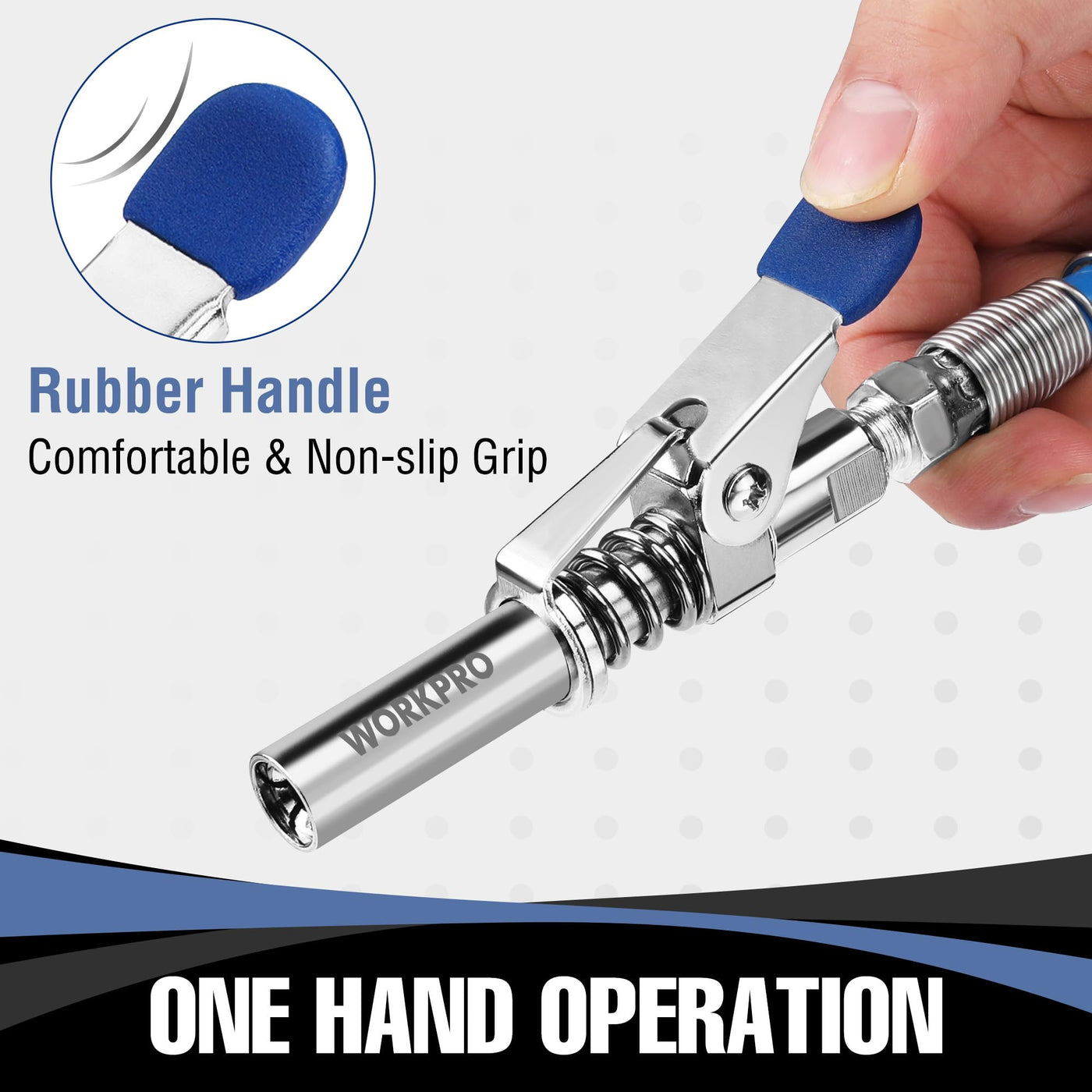 WORKPRO Grease Gun Coupler, Heavy Duty Quick Release Grease Gun Tip, 10000PSI High Pressure Strong Lock onto Zerk Compatible wit