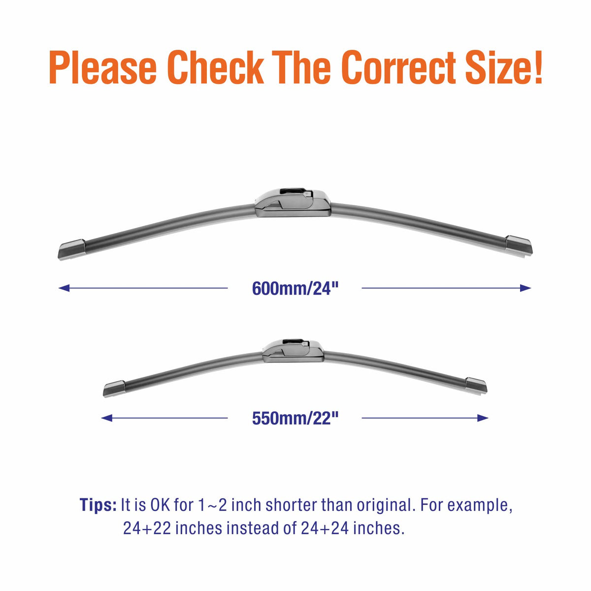 Wowiper Oe Quality Windshield Wiper Blades - 24 And 22 Inch (Set Of 2), Metal Blade For 300% More Stable, For Chrysler 200 2014-