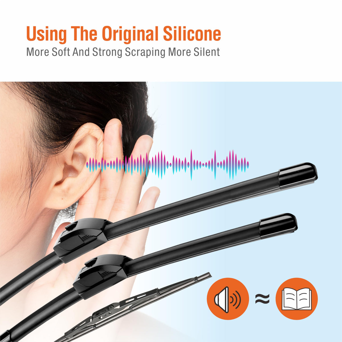 Q: What are the benefits of silicone wiper blades compared to traditional rubber wipers?A: Silicone wiper blades, like the WOWIPER, do not produce noise and reduce shaking or fogging during operation. They also offer superior waterproofing, ensuring better visibility and safer driving conditions.