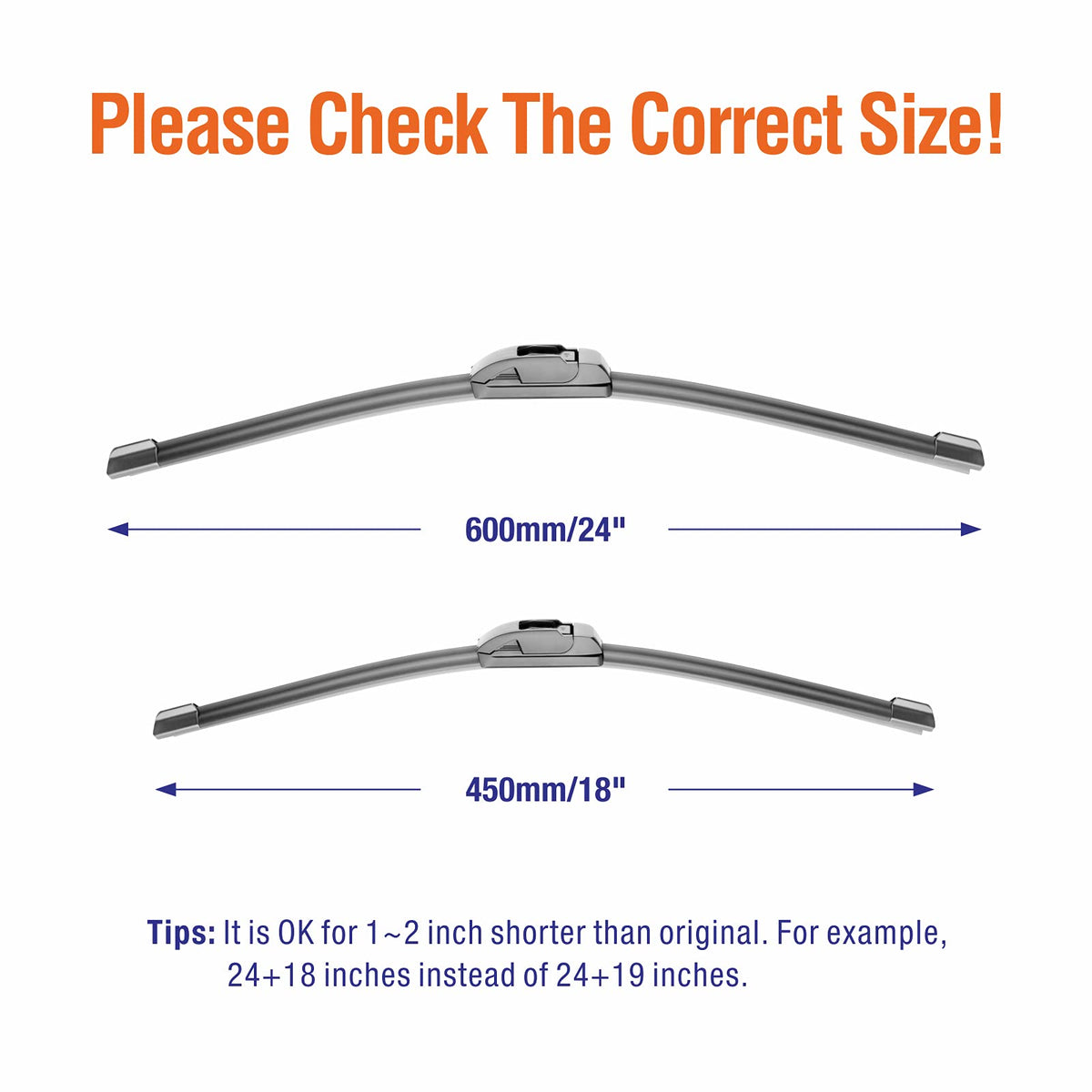 Wowiper Wiper Blades 24'' + 18'' Automotive Replacement Windshield Wiper Blades For My Car Premium All-Seasons Oe Quality Wipers