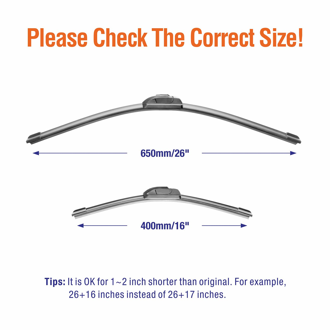 Wowiper Wiper Blades 26'' + 16'' Automotive Replacement Windshield Wiper Blades For My Car Premium All-Seasons Oe Quality Wipers