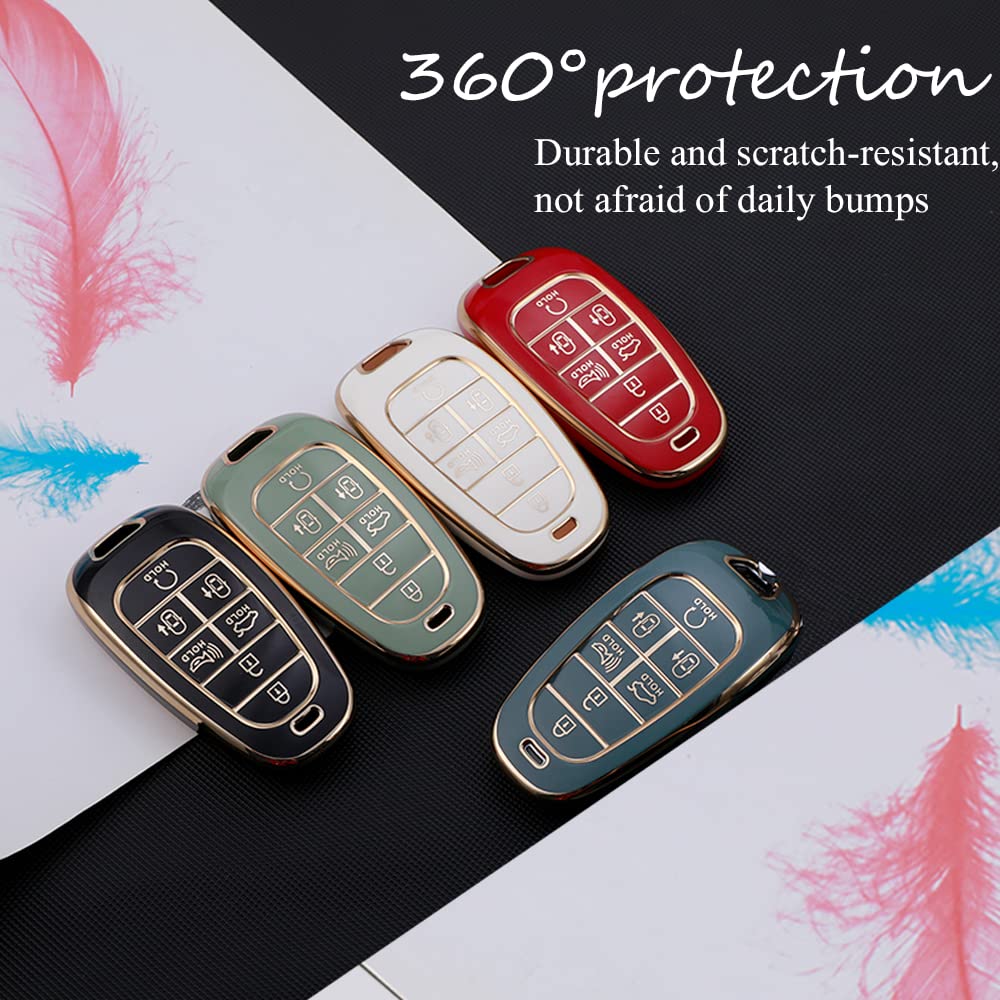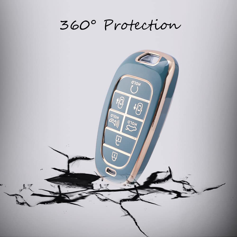 Wsauto For Hyundai Key Fob Cover Soft 7 Buttons Tpu Protection Car Key Case Shell With Metal Keychain Compatible With 2019 2020