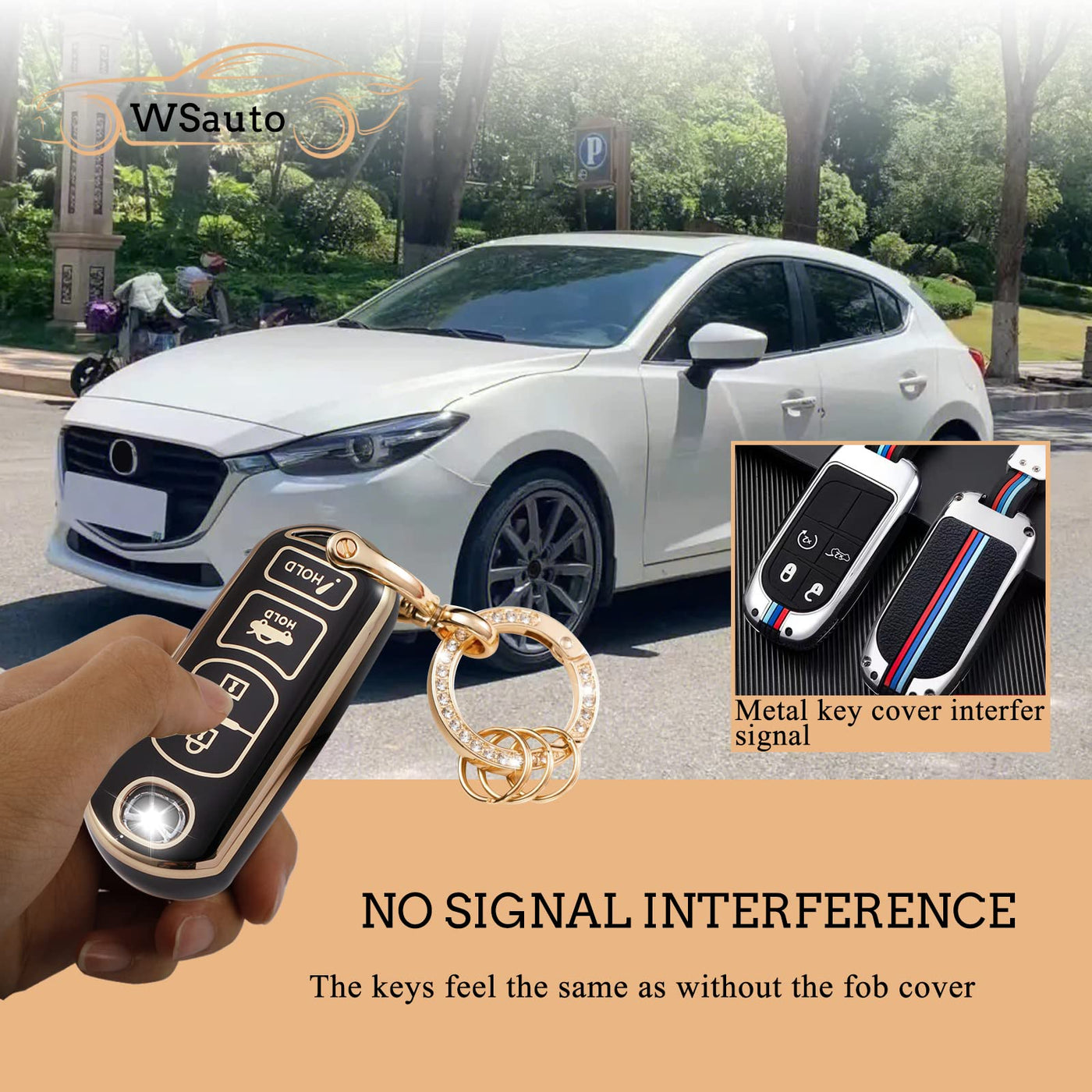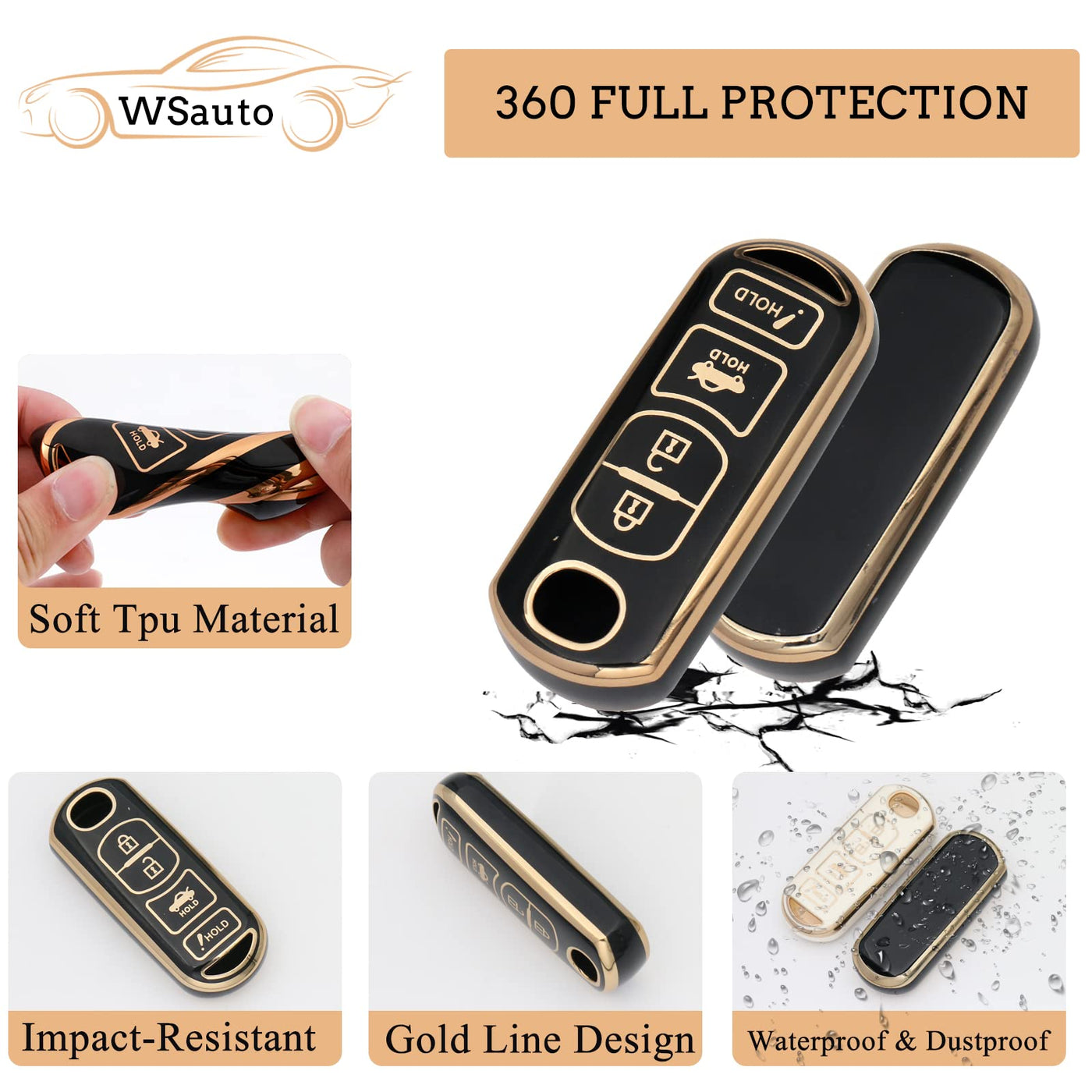 Wsauto For Mazda Key Fob Cover Soft 3 4 Buttons Tpu Protection Car Key Case Shell With Fashion Gold Bling Keychain Compatible Wi