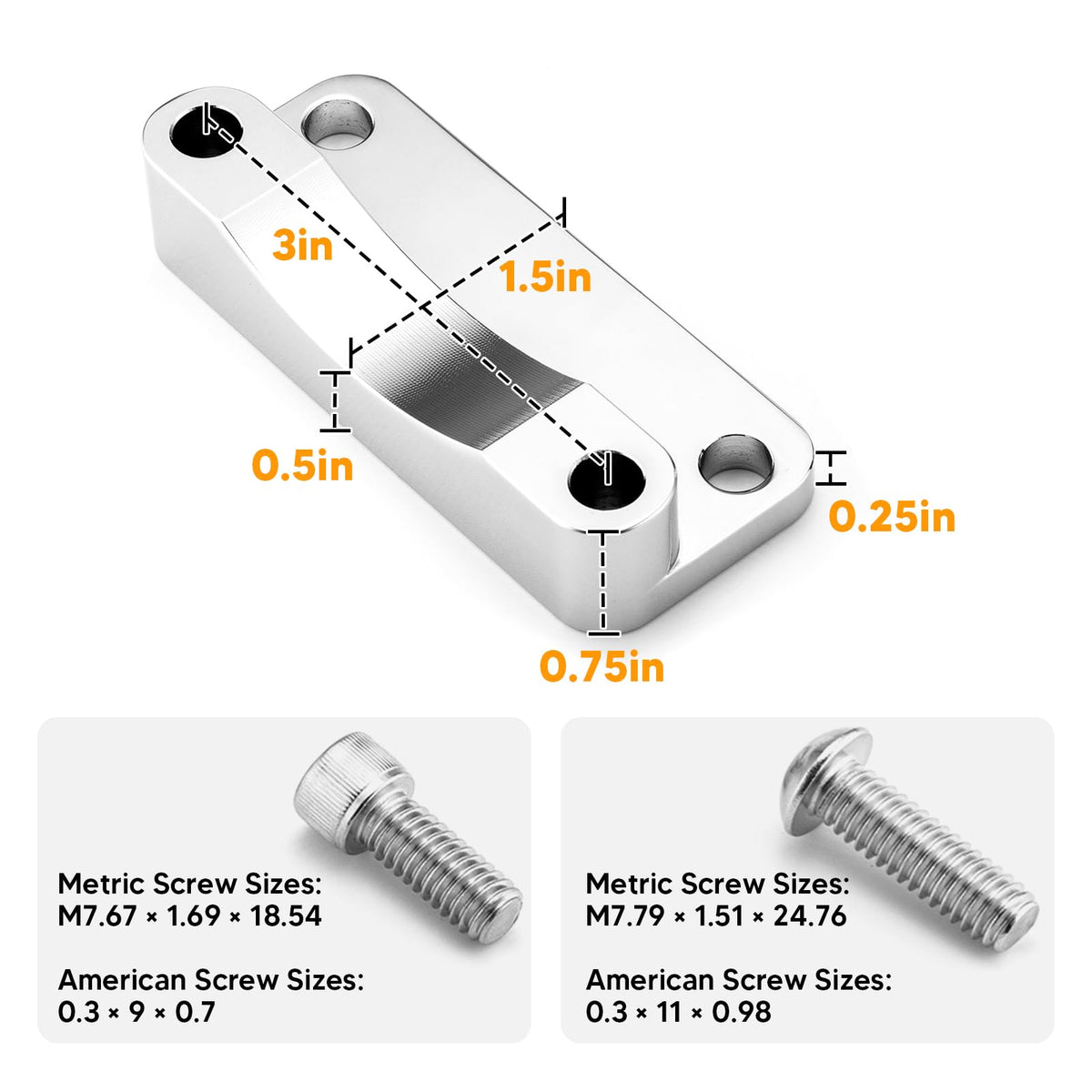 Fitment List Compatible with 2003-2013 FLHT/FLHR, Screaming Eagle Models with 21'' front tire Specifications Item: Front Fender Relocator Kit Material: Aluminum Color: Chrome Thickness: 0.5'' Mounting Hole Distance: 3'' Condition: Aftermarket Brand New Features ?Compatibility? This front fender relocator kit is compatible with 2003-2013 FLHT/FLHR, Screaming Eagle Models with 21'' front tire ?Affordable? This fender bracket raises the stock fender for direct replacement of 21'' tires. It is an economical and easy way to upgrade tires from existing fender. ?High-Quality? Made from high-quality aluminum materials, our front fender spacers are built to last, withstanding the wear and tear of even the toughest riding conditions. ?Easy Installation? With the necessary hardware, our front fender spacer can be quickly and easily installed on your motorcycle. ?Package Includes? 1 Pair Fender Relocator Spacers With Necessary Hardware