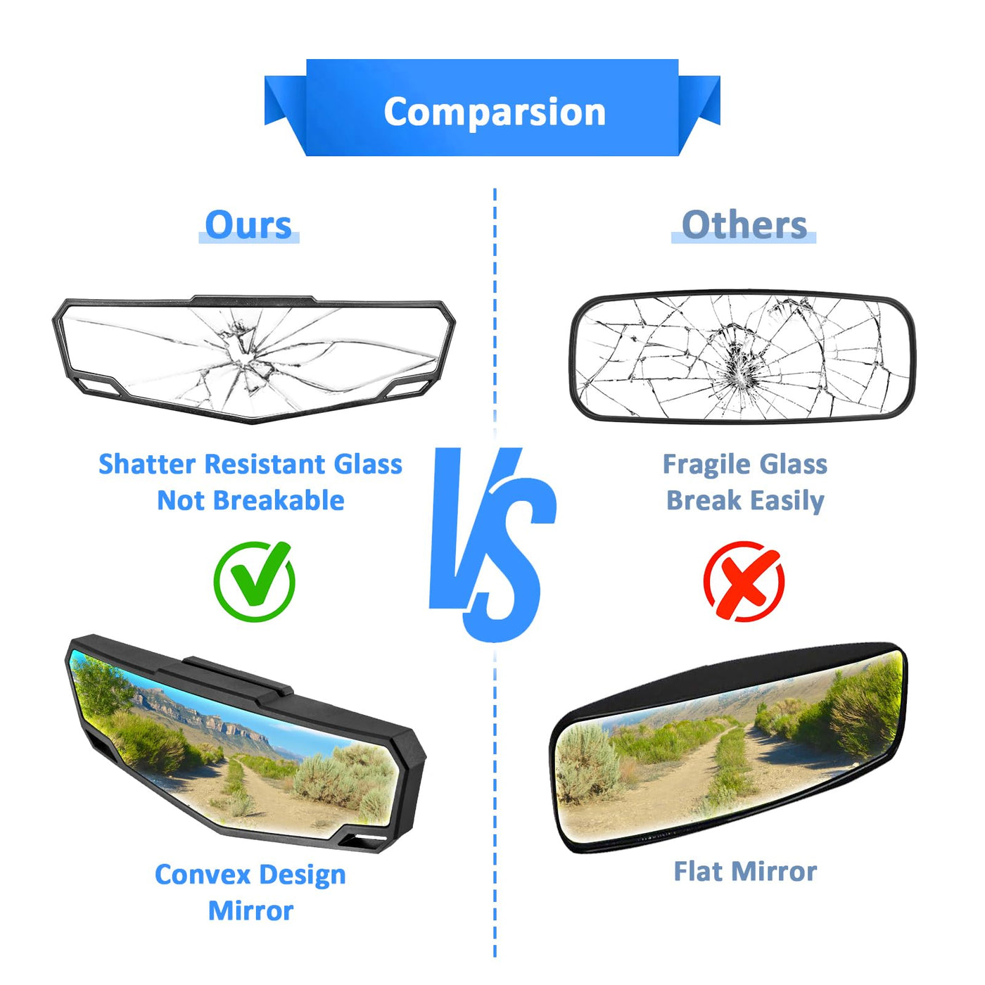Fitment: Fit for Polaris RZR Pro XP?Turbo R?Pro R?RZR XP 1000?RZR 570?RZR 800?RZR 900?RZR S 1000?RZR RS1?RZR Turbo S Fit for Polaris Ranger XP 700?XP 800?Ranger 700?Ranger 800?Ranger 900 Fit for Polaris General 1000?General XP 1000 Fit for Can Am Maverick X3 All Models Fit for Can Am Maverick Trail All Models Fit for Can Am Maverick Sport All Models Fit for Can Am Maverick Maverick 1000?Maverick 1000R Fit for Can Am Commander All Models Fit for Honda Talon All Models Fit for Honda Pioneer All Models Fit for Kawasaki Teryx All Models Fit for Kawasaki Mule All Models Fit for Yamaha YXZ1000R All Models Fit for Yamaha Wolverine All Models Fit for Yamaha Rhion All Models Fit for Yamaha Viking All Models Fit for Arctic Cat Wildcat All Models Fit for Arctic Cat Prowler 500?HDX 500?HDX 700?XT 1000?XT 550? XT 700?XTX 700?XTZ 1000 Fit for Arctic Cat HDX 700?HDX 500?Havoc?Havoc X Fit for Arctic Cat Stampede All Models Fit for CFMOTO UFORCE 500?UFORCE 800 Fit for CFMOTO ZFORCE All Models Fit for John Deere Gator XUV All Models(except XUV 835 and XUV 865) Fit for John Deere Gator RSX 850?Gator RSX 860?Gator HPX Fit for Kubota RTV All Models(except RTV1100 and RTV-X1100C) Specifications: Item: Center Rear View Mirror Material: ABS housing & Tempered Glass Style: Off-Road Size: 10.5''x3.0'' Design: Adjustable Angle Condition: 100% Brand New