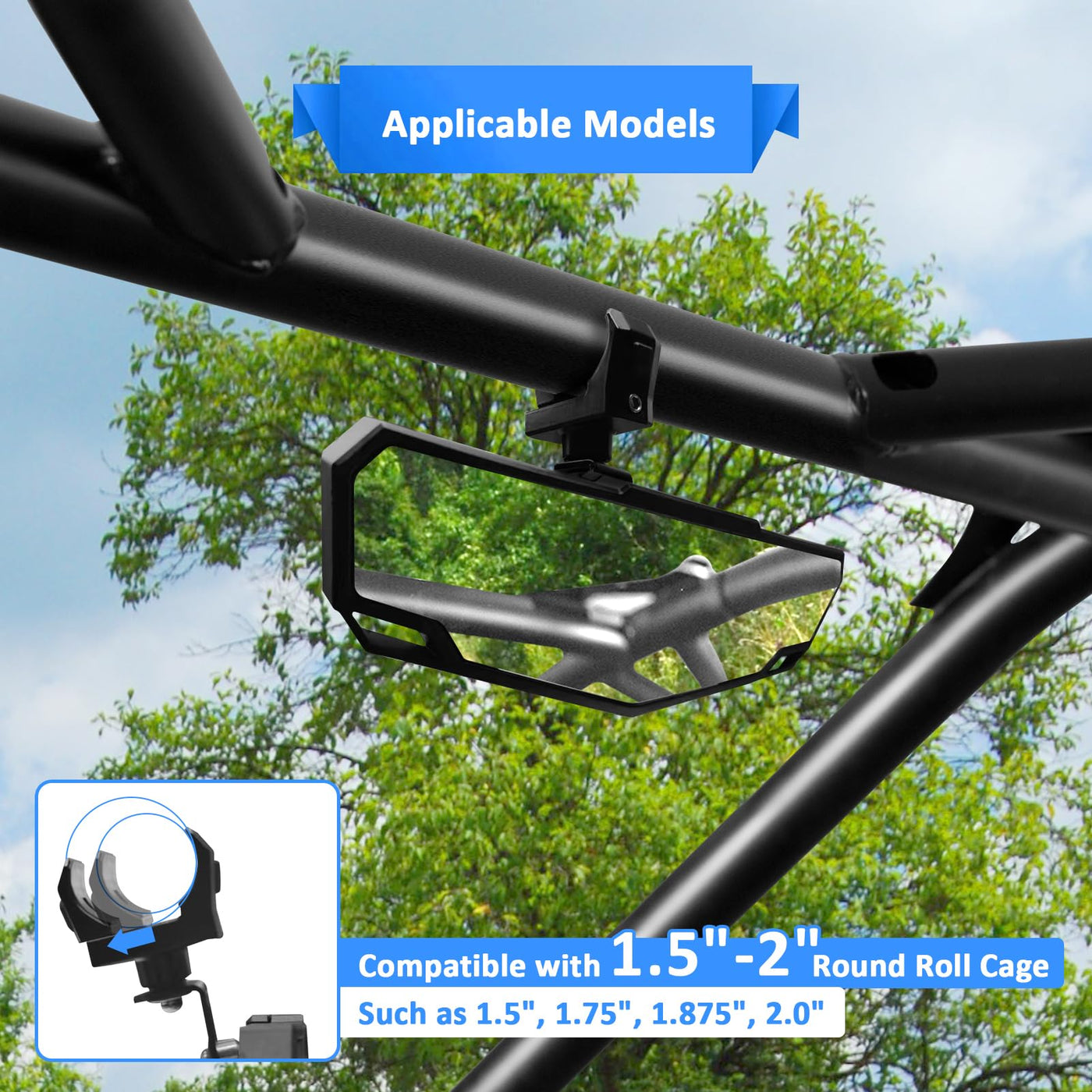 Wsays UTV Center Rear View Mirror Adjustable Angle fits 1.5-2'' Round Roll Bar Rear Center Convex Mirror Compatible with RZR Mav