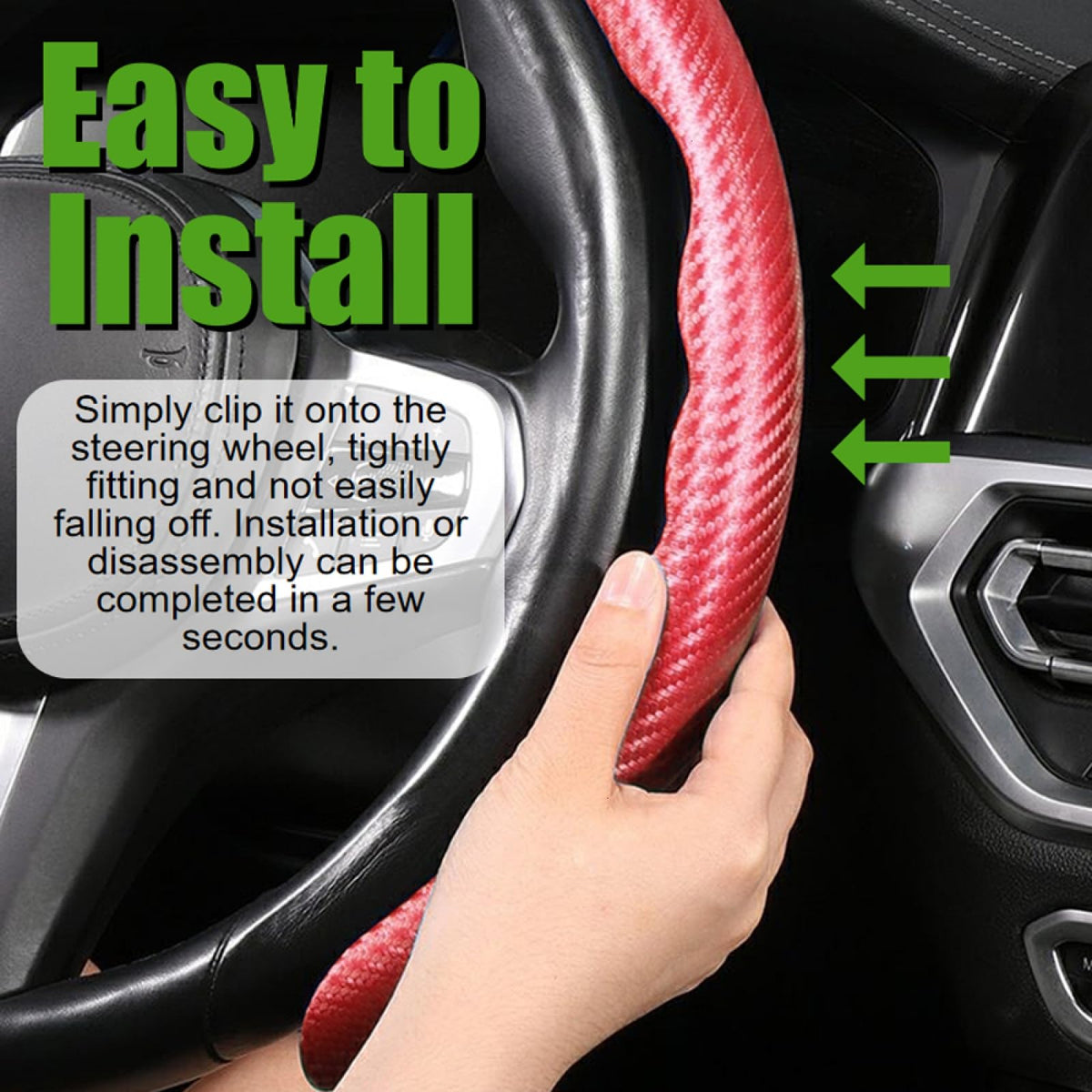 WSSROGY 3 Pack Anti-Skid Segmented Carbon Fiber Car Steering Wheel Cover Protector Universal for Most Car Wheel (Red)