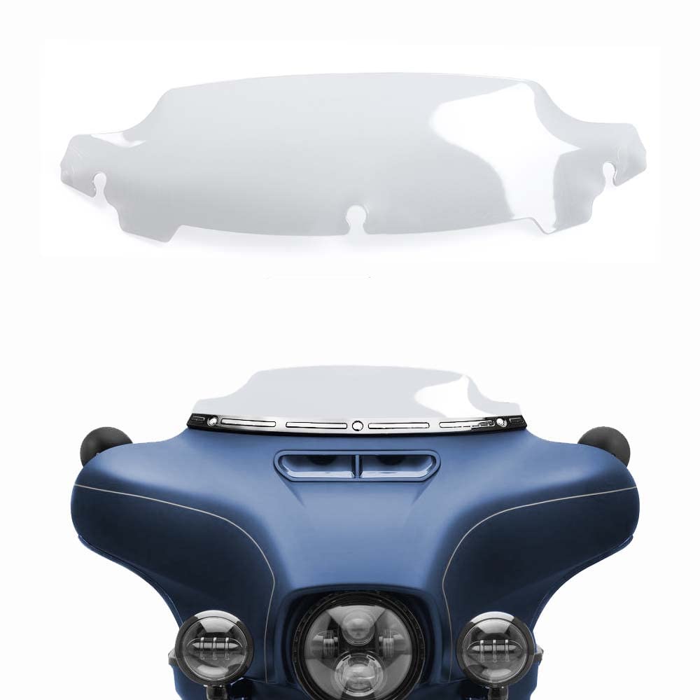 FITMENT: It is Aftermarket Windshield used for Harley Davidson Electra Street Glide Touring Bike 2014-2022 | UNIQUE DESIGN & SWEEPING VIEWS: The Windshield is a great look for all Touring models and is shaped for the perfect combination of effective airflow management and wow styling. Shape decreases wind noise and improves your ability to hear the motorcycles sound system. The edges are polished and beautifully finished. Enjoy wide and splendid views through this suitable height while riding. | WINDSCREEN HEIGHT: 4.5 (measure from the center of the middle bolt) | SUPERIOR MATERIAL & DURABILITY: High quality ABS plastic with Smooth surface, flexible and strong, hard texture, anti-sand anti-stone, not easily be scratched or cracked, riding safety. Long life and durability. | INSTALLATION: Easy to Install. Please purchase or use the existing hardware of your current fairing. The instruction manual is not included, We can send you the installation video if necessary.
