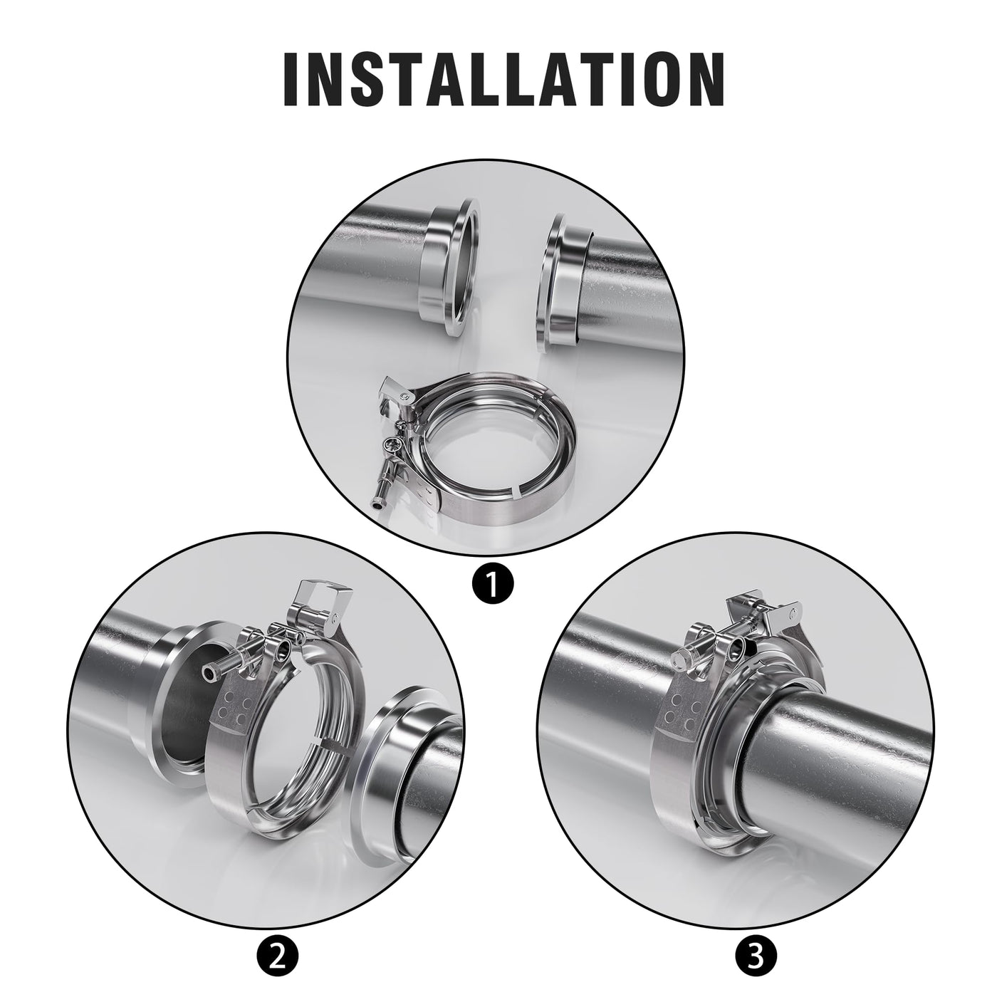 ?304 Stainless Steel?---V Band Clamps are made of professional steel, rust-resistant, high-temperature and corrosion-resistant, and have a smooth surface without burrs | ?Easy Installation?---V Band clamp makes it easy to install and remove the intercooler system and turbine components | ?Easy On & Off?---A V-band kit allows you to connect or disconnect sections of your exhaust by removing a single nut. perfect for applications requiring frequent removal. | ?Application Scenarios?---V Band clamps are mainly used for pipe connection of exhaust pipes, pumps, diesel engines, turbochargers, mufflers, intercoolers and other equipment | ?A Variety Of Sizes?---Multiple sizes of V Band clamps can meet your tightening needs of different sizes
