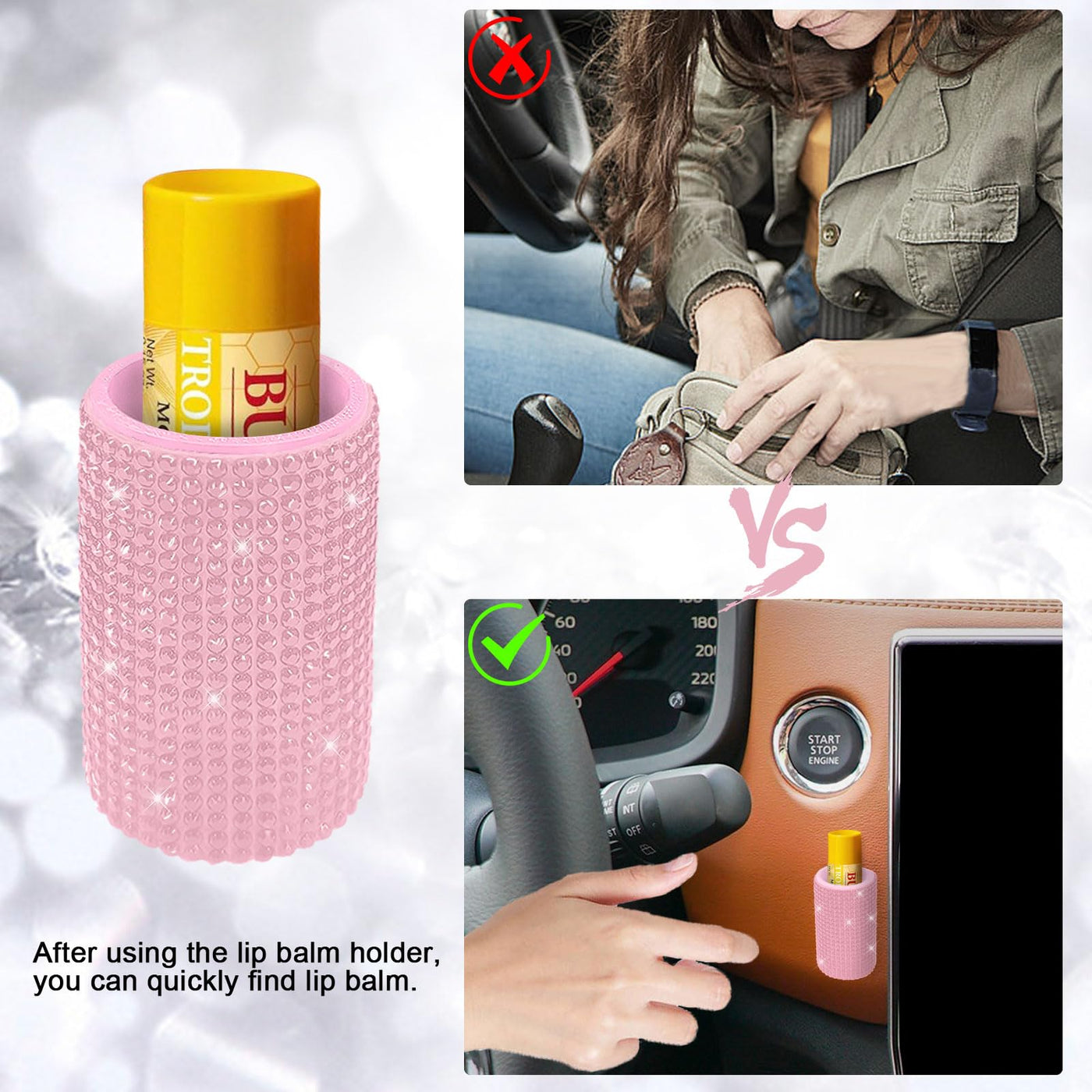 xbrtaia 1 Pack Upright Car Chapstick Holder, Bling Insulating Lip Balm Holder,Rhinestone Car Accessories for Women Interior,Suit