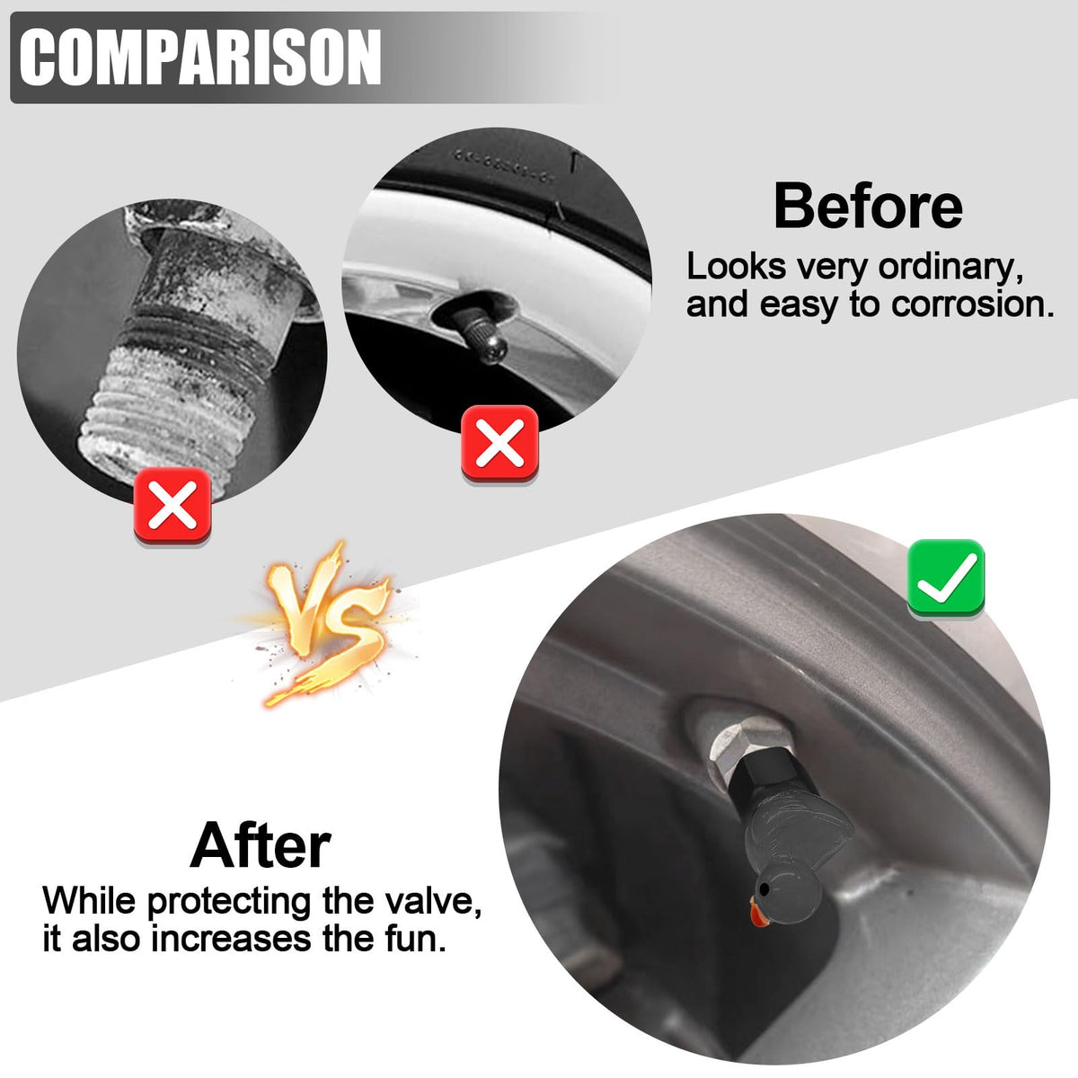 You will receive 4 pcs glow in the dark cute duckling tire valve cap,it can be placed on any car for decoration,while balancing its functions, it also ensures the appearance of the car.