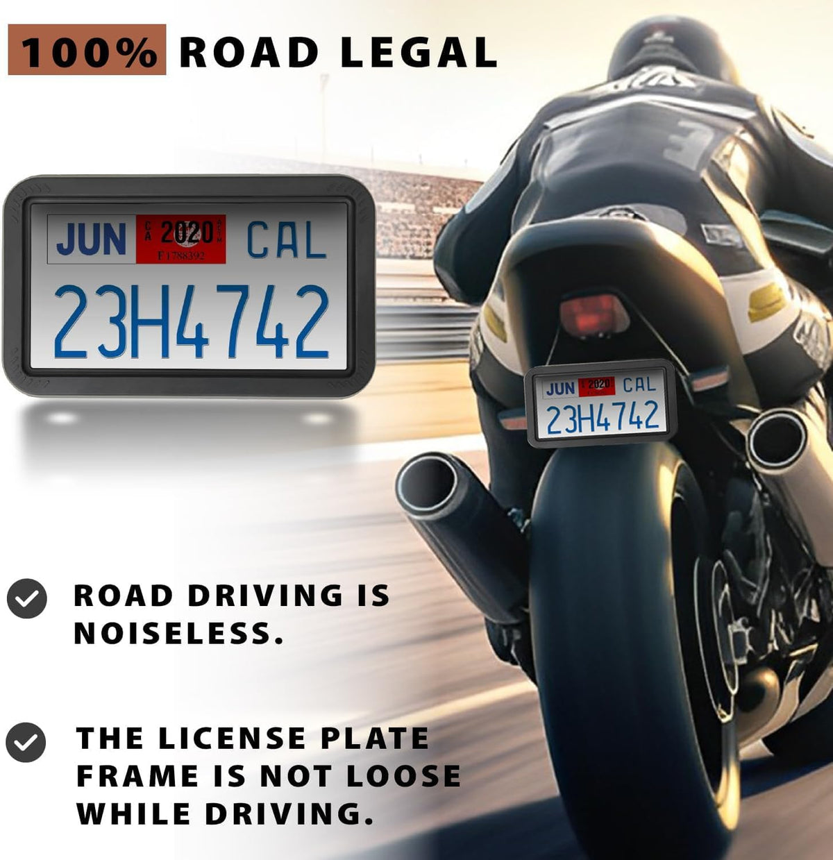 Stand out on the road: The XCLPF Motorcycle Silicone Black License Plate Frame is noise-free on the road and gives you a different driving experience | Street Legal: Have you ever been pulled over for a violation? Silicone Bike Plate Frame 4x7 inch Zero license plate or sticker obstructions. You can drive safely and confidently | Quality silicone material: The black silicone License plate frame is made from industrial-grade silicone, which prevents scratches compared to most metal License plate frame and does not deform over time | Clever design: Motorcycle silicone license plate holder. There are four drain holes to release the water. Even if it's pouring rain and there's no worry about rusty license plates | Why it's great: Silicone license plate frames are resistant to rust and rain and No vibration. Long-term exposure to air does not cause oxidation and discoloration