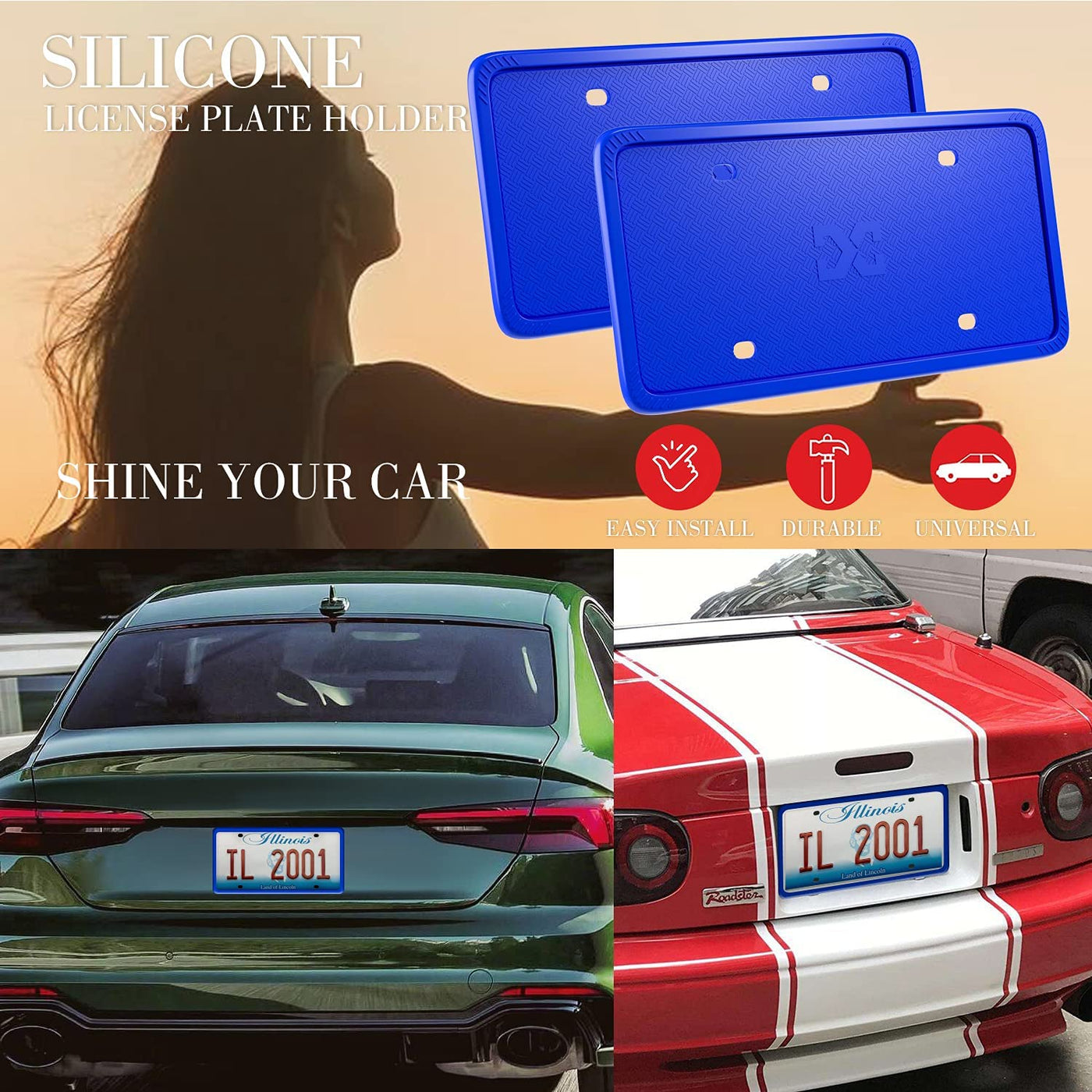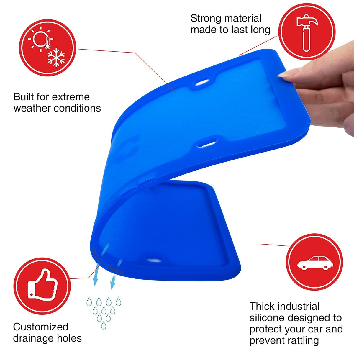 Xclpf Silicone Blue License Plate Frame Covers 2 Pack- Front And Back Car Plate Bracket Holders. Rust-Proof, Rattle-Proof, Weath