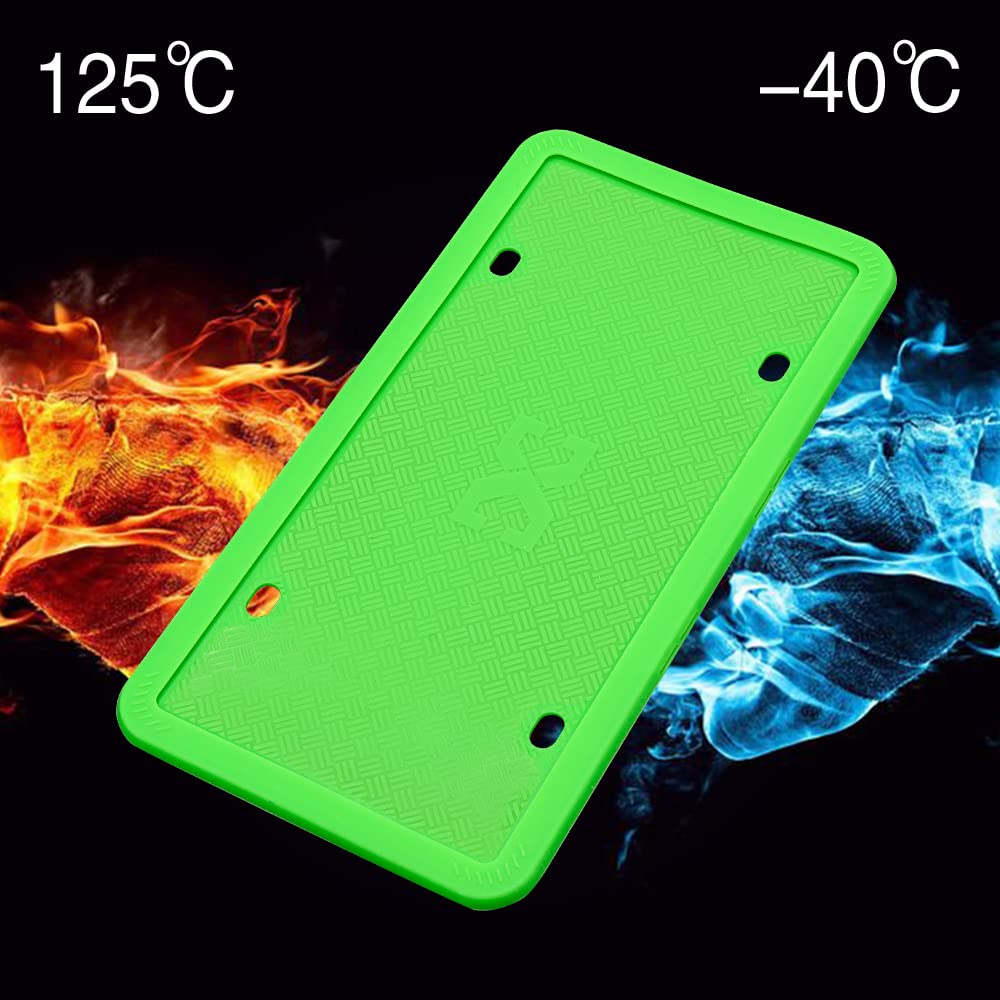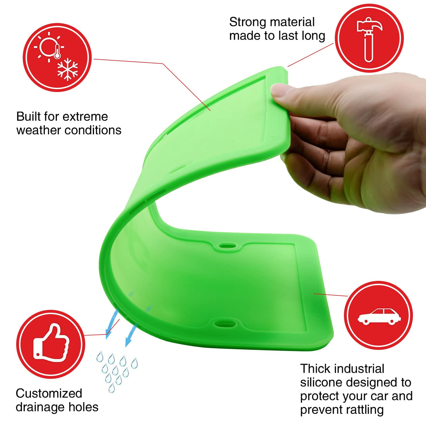 Xclpf Silicone Green License Plate Frame Covers 2 Pack- Front And Back Car Plate Bracket Holders. Rust-Proof, Rattle-Proof, Weat