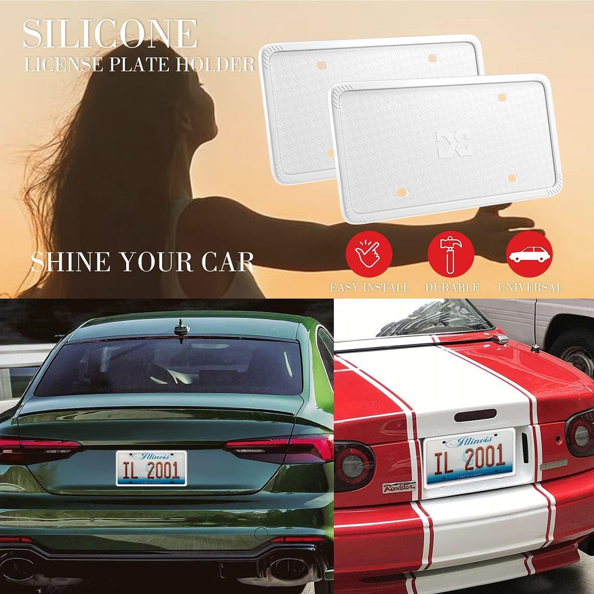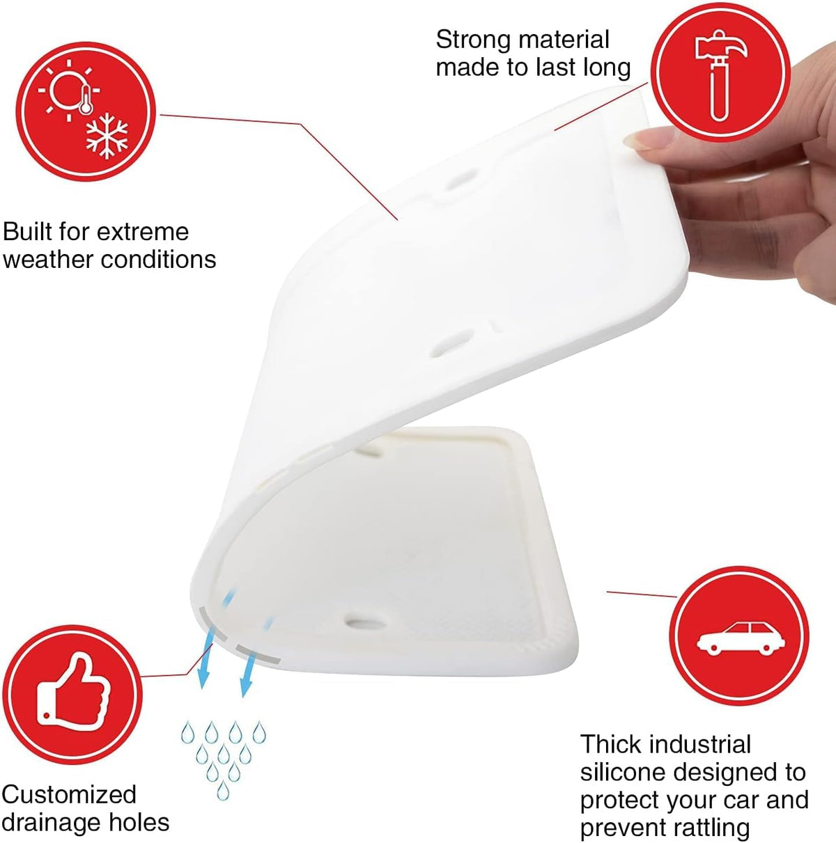 Xclpf Silicone White License Plate Frame Covers 1 Pack- Front And Back Car Plate Bracket Holders. Rust-Proof, Rattle-Proof, Weat