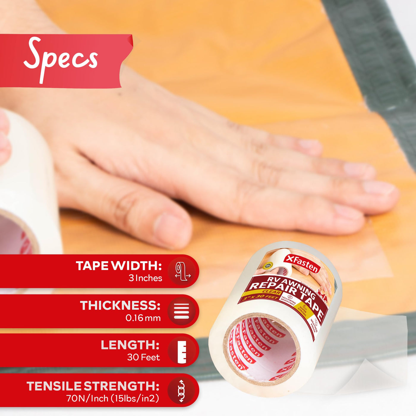 Xfasten Rv Awning Repair Tape, 3-Inches X 30 Feet, Waterproof Rip Stop Patch For Vinyl, Rv Punctures, Camper, Awning, Canopy, Te