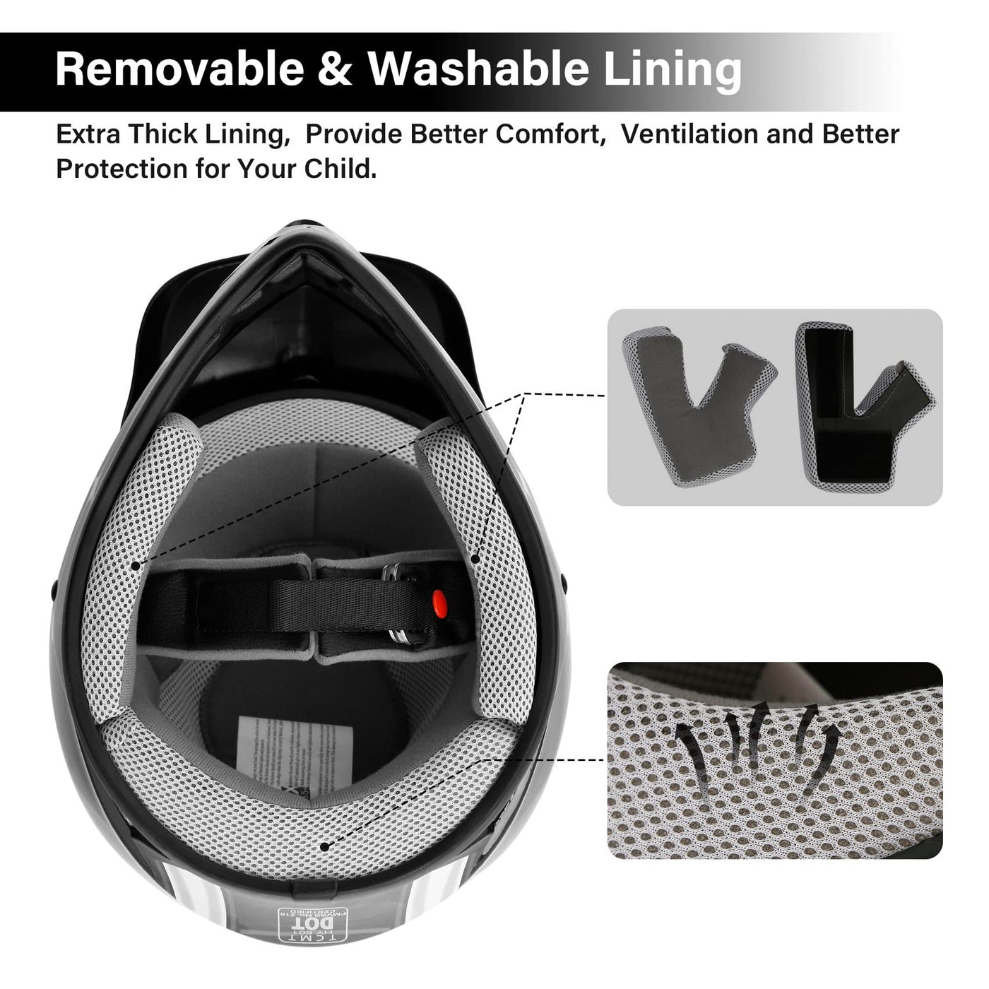 Xfmt Dot Youth Kids Motocross Offroad Street Dirt Bike Helmet Goggles Gloves Atv Mx Helmet (Black Spiders, Medium)