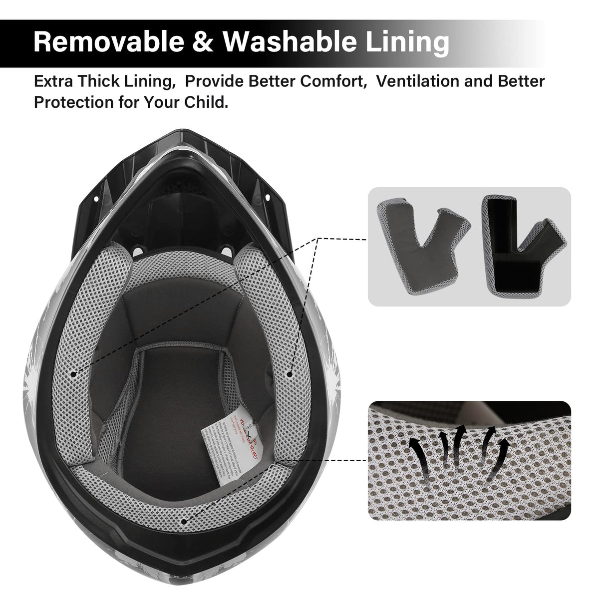 Xfmt Dot Youth Kids Motocross Offroad Street Dirt Bike Helmet Goggles Gloves Atv Mx Helmet, Black White Firework