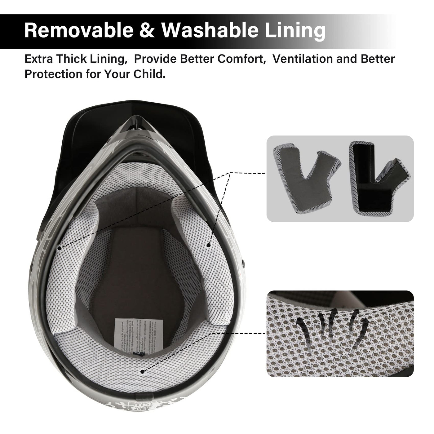 Q: What sizes are available for the XFMT DOT Youth Kids Motocross Helmet?A: The XFMT DOT Youth Kids Motocross Helmet is available in four sizes: Small, Medium, Large, and X-Large. To ensure the perfect fit, it’s recommended to measure the head circumference, which ranges from 19.15 inches for Small to 22.5 inches for X-Large.