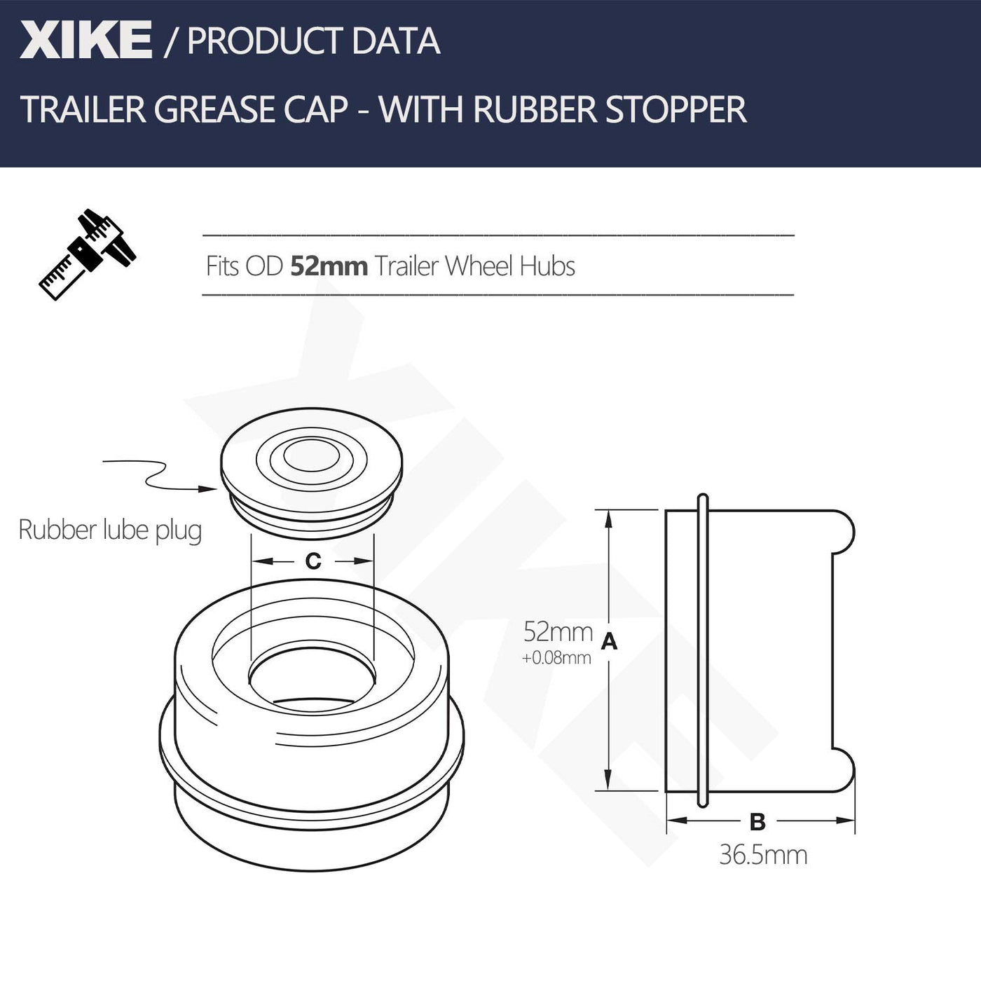 ? Fits 1.980' Inch Trailer Hub Wheel Bore. | ? Two Grease Cap And Two Rubber Grease Plugs. | ? Keeps Water And Debris Out Of Bearing Hubs. | ? Helps Extend The Life Of Wheel Bearings. | ? Removeable Rubber Cap For Easy Check Grease.