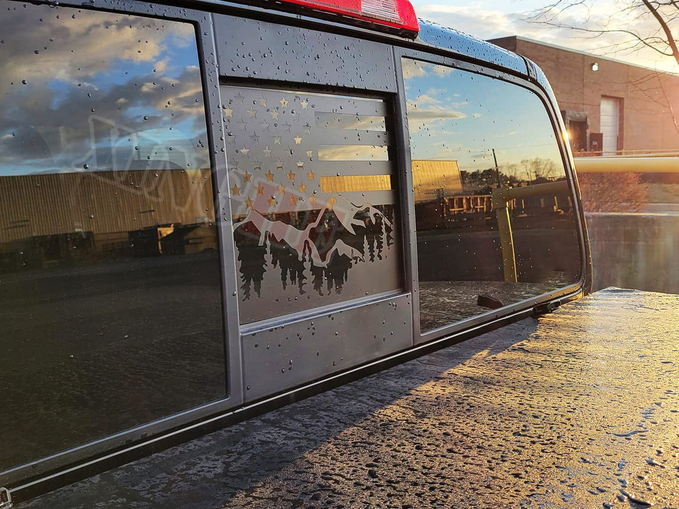 Xinghe For 2015-2023 F150, 2017-2022 F250 F350, Rear Middle Window American Flag Decals, Matte Black Usa Flag Decal For Truck Ba