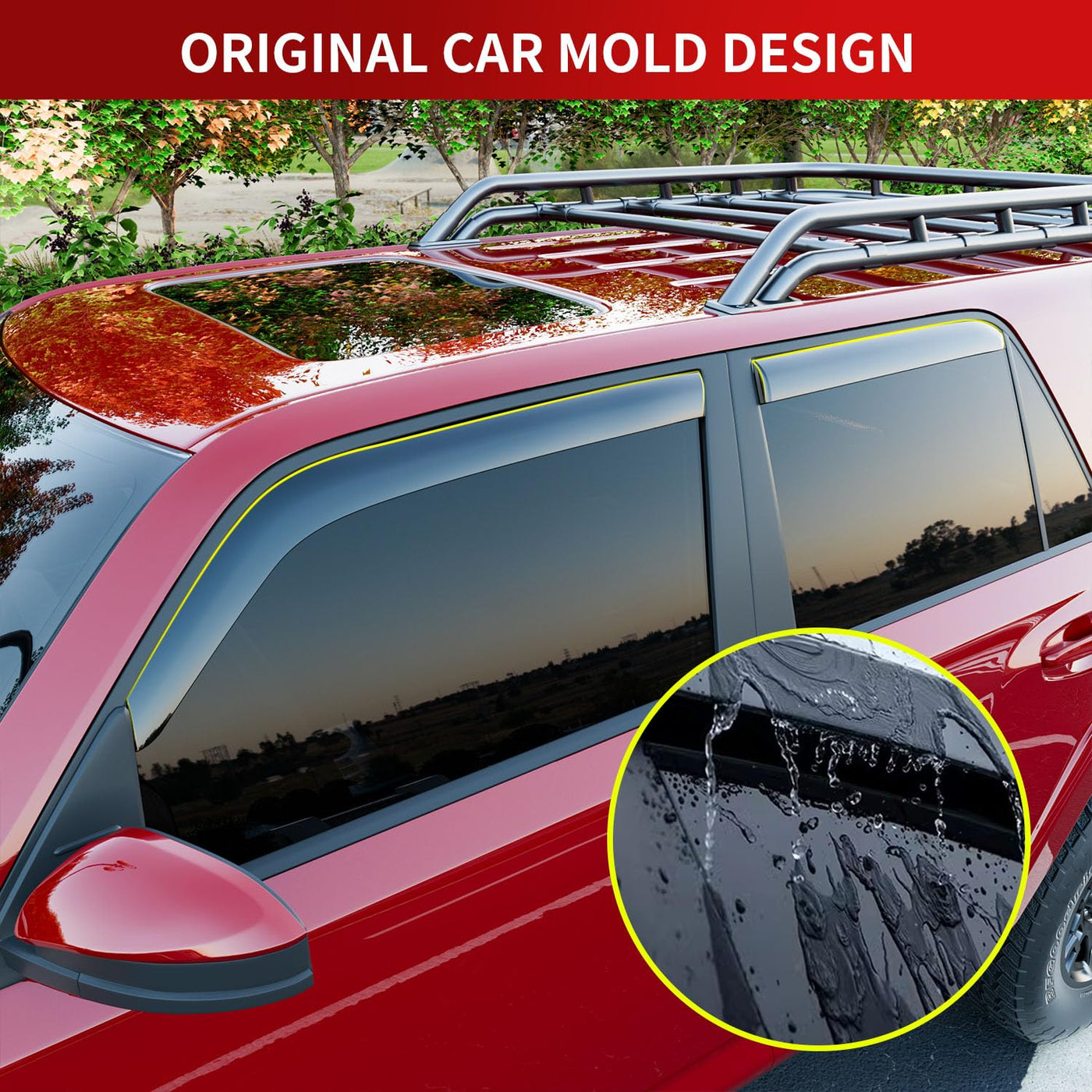 Fitment: Our deflector compatible with 2010 2011 2012 2013 2014 2015 2016 2017 2018 2019 2020 2021 2022 2023 2024 Toyota 4Runner rain deflector is designed according to the original model. Not only do these deflectors fit tightly, they also enhance the overall appearance of your vehicle. Please check your vehicle model carefully before placing an order. High-quality Material: The visor trim cover replacement for 2010-2024 Toyota 4Runner side window visor deflector is made of hard, impact-resistant PC material, which is not easy to deform. It can effectively blocks rain, snow and sand in extreme weather to protect the car from damage. Additionally, it has excellent transparency, allowing you to enjoy a clear view even when the window visors are installed. It has no bad smell and is easy to clean. Function: This deflector compatible with 2010-2024 4Runner window visor can protect window surface against rain and dirty. They can block most of the rain in rainy days, so as to prevent the interference of rain on driving, and improve the safety of driving in rainy days. Our window shades do not affect the normal opening and closing of windows, and increase the air flow inside the car, reducing the noise of window opening. They also solve your worries: without worrying about the noisy wind, chilly snow, annoying rain splashes, or the blazing sunshine. Easy to Install and Clean: The side window deflectors compatible with Toyota 4Runner 2024-2010 are easy to install, they come with double-sided tape so they can be directly pasted. Please wipe the installation area clean before installation and heat the double-sided tape with a hair dryer. It will greatly enhance the adhesion of the product. Do not touch water within 48 hours after installation. We have installation picture on our product homepage and in the instructions that come with your package. We provide professional installation guidance. Satisfactory Service: If you have any questions about our visor deflector replacement for 2010 2011 2012 2013 2014 2015 2016 2017 2018 2019 2020 2021 2022 2023 2024 Toyota 4Runner window deflector, please contact us, we are willing to solve your problem!