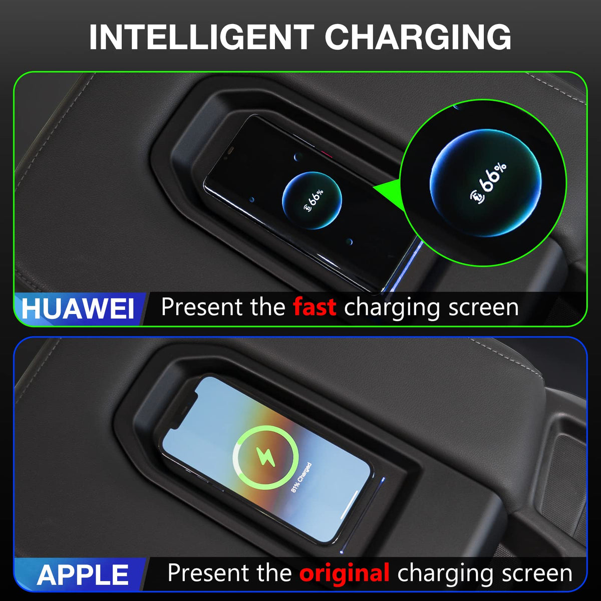 Exclusive Fitment: Our wireless charger is compatible with the car model with split bench seat. It is compatible with 2022 2023 2024 Chevy Silverado 1500, 2022 2023 2024 GMC Sierra 1500, 2022 2023 2024 Chevy Silverado 2500HD 3500HD, and 2022 2023 2024 GMC Sierra 2500HD 3500HD. We have updated the connector, which will fit your car better.If the phone is charging while connected to carplay (connected to Bluetooth, etc.), it will cause the phone to heat up and the charging power will drop. Please confirm your specific car model and year carefully before buying it.Breathing Light: When you use the wireless charger, you may encounter different flashes of the breathing light. The breathing light indicates the charging pad is under normal charging. If your charging pad's breathing light flashes fast, it shows that the wireless charger is under abnormal charging. If there is no breathing light at all, it shows that the wireless charger does not work at all.Function: Our 15W fast charging pad will help you to charge your phone more safely and quickly. You can charge one phone with a case. Your phone will not slide around during the charging.Easy to Install: There is no difficulty installing our wireless charger. We provide you the installation video, and you can install your wireless charging pad with it.Warranty: We provide you satisfactory service. If you have installation problems about the wireless charger, please contact us. We will provide you with after-sales service.