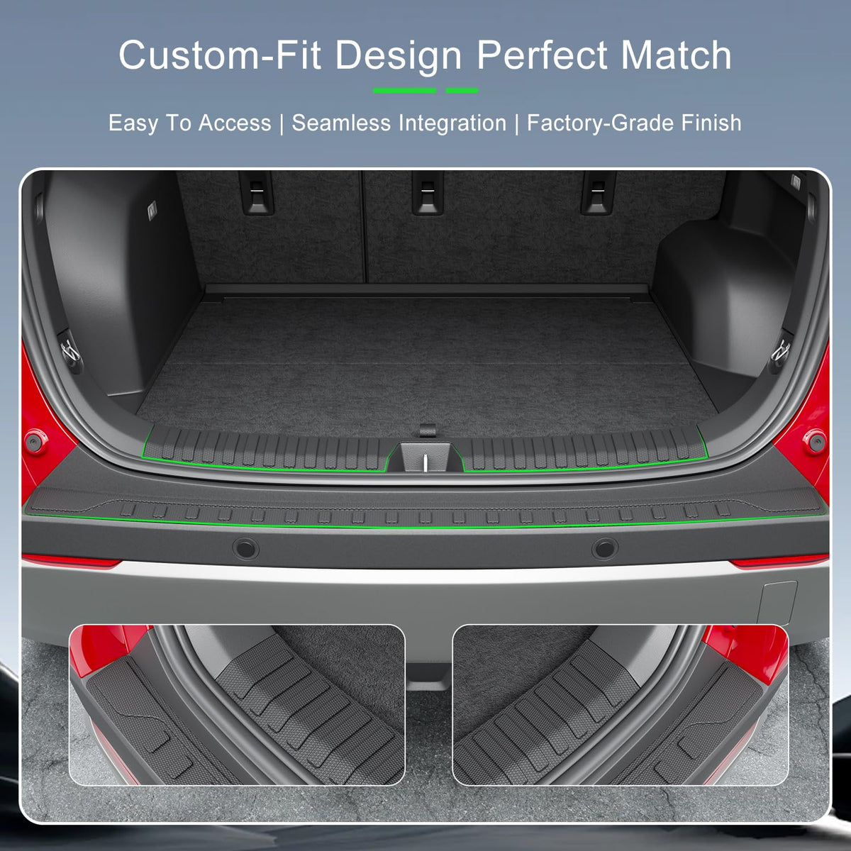 Compatibility: The rear bumper protectors compatible with 2025 Chevy Equinox rear bumper guards are designed according to the original car. ATTENTION:It is not for EV. The guards are also replacement for GMC Terrain trunk sill protector. Please double check your car's model before making your purchase. Material: The accessories compatible with 2025 Chevy Equinox bumper protector for cars are made of high-quality TPE,which is wear-resistant, ensuring long-lasting use. This good material is soft and flexible, and has no unpleasant smell. The unique rice grain surface of the trunk sill protector can effectively anti-skid. Function: Internal and external trunk sill protectors replacement for GMC Terrain rear bumper guards can keep your car from all kinds of scratches, collisions and other dirty, effectively protect the paint surface of the rear bumper, and play a decorative role, so that your car has more personality. They fit closely with the original car and do not affect the normal opening and closing of the car. Installation: The installation of our vehicle bumper protection strip compatible with Chevy Equinox trunk sill protector is simple and requires no tools. It comes with double-sided tape on the back, all you need to do is place it in the appropriate position. Service: If you have any questions about our interior and exterior rear bumper guards replacement for 2025 GMC Terrain Chevy Equinox bumper guards, please contact us at any time. We will provide you with good service and solve any problems for you!