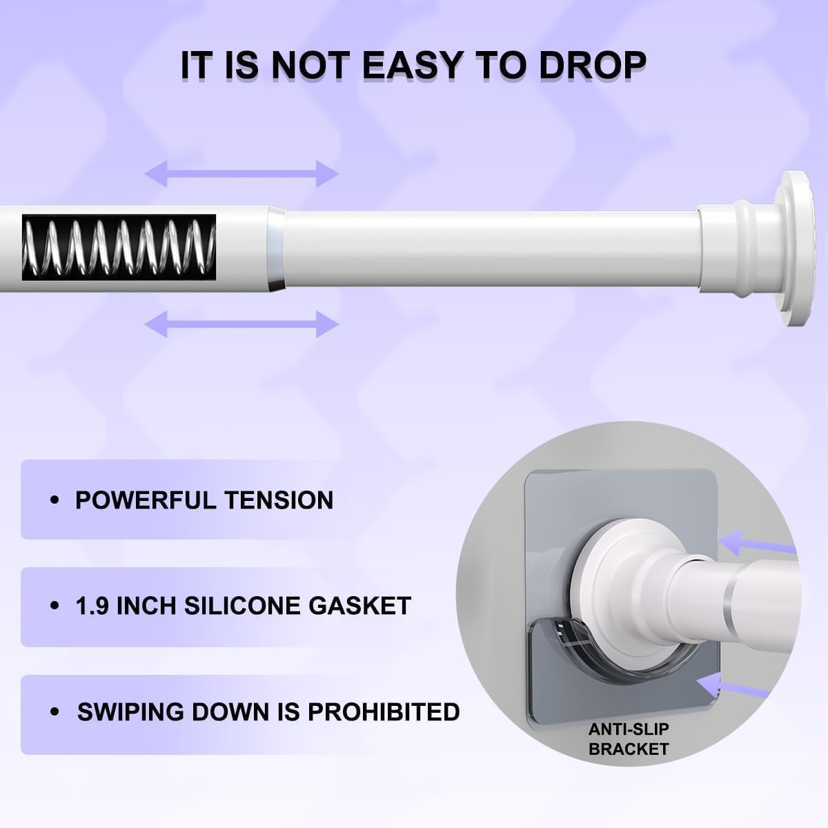 Q: How does the tension mechanism work, and is it durable?A: The shower rod features a high-strength spring mechanism that has been rigorously tested to maintain a tension of 0.86 inches (2.2cm). This design ensures that the rod remains securely in place, capable of supporting up to 22 pounds without slipping.