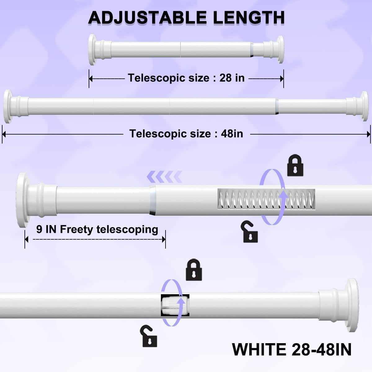 Xiqiyy Shower Curtain Rod 28-48 Inch Heavy Duty Tension Curtain Rod No Drilling Adjustable Tension Rod Spring Shower Rod For Bathroom Closet,Stainless Steel,White