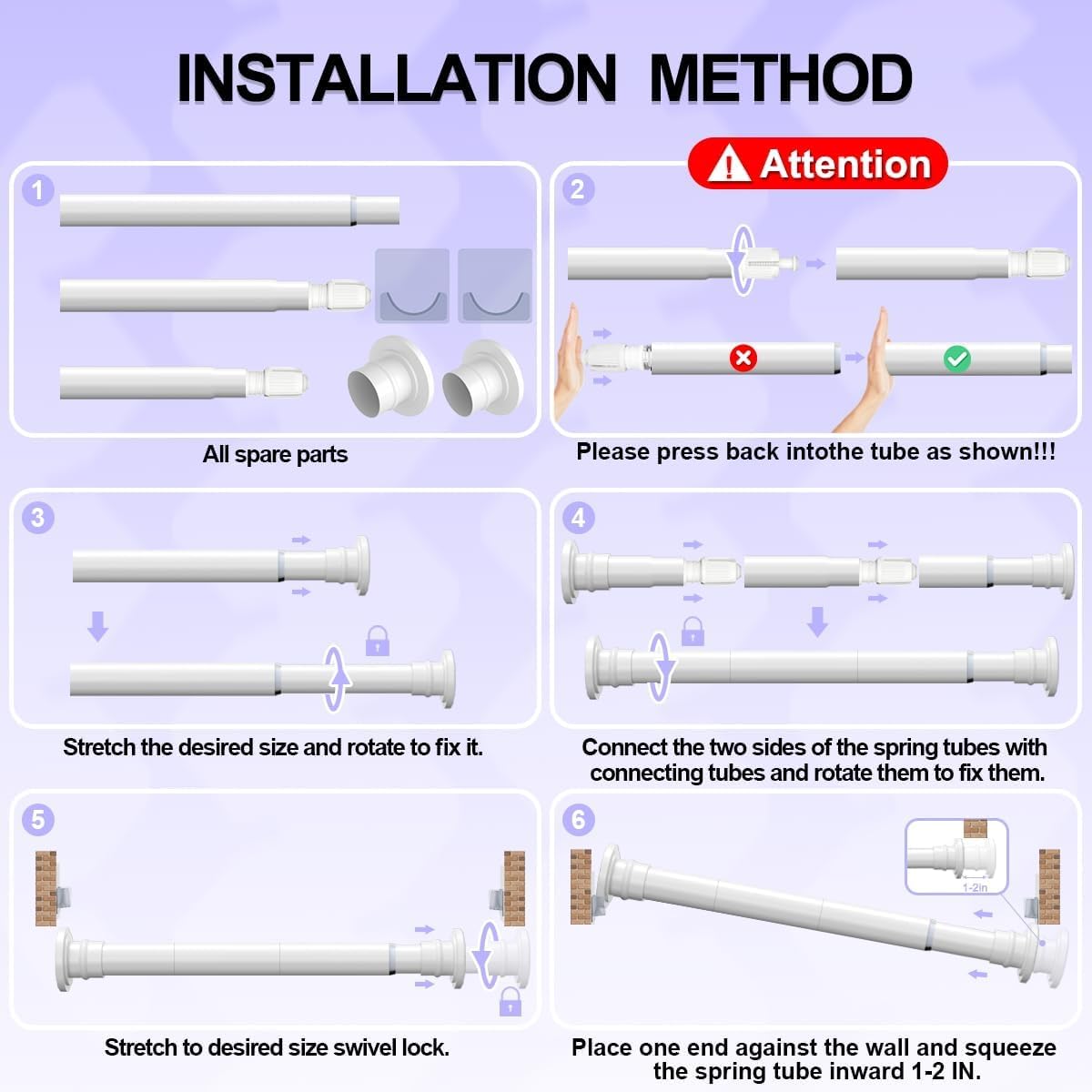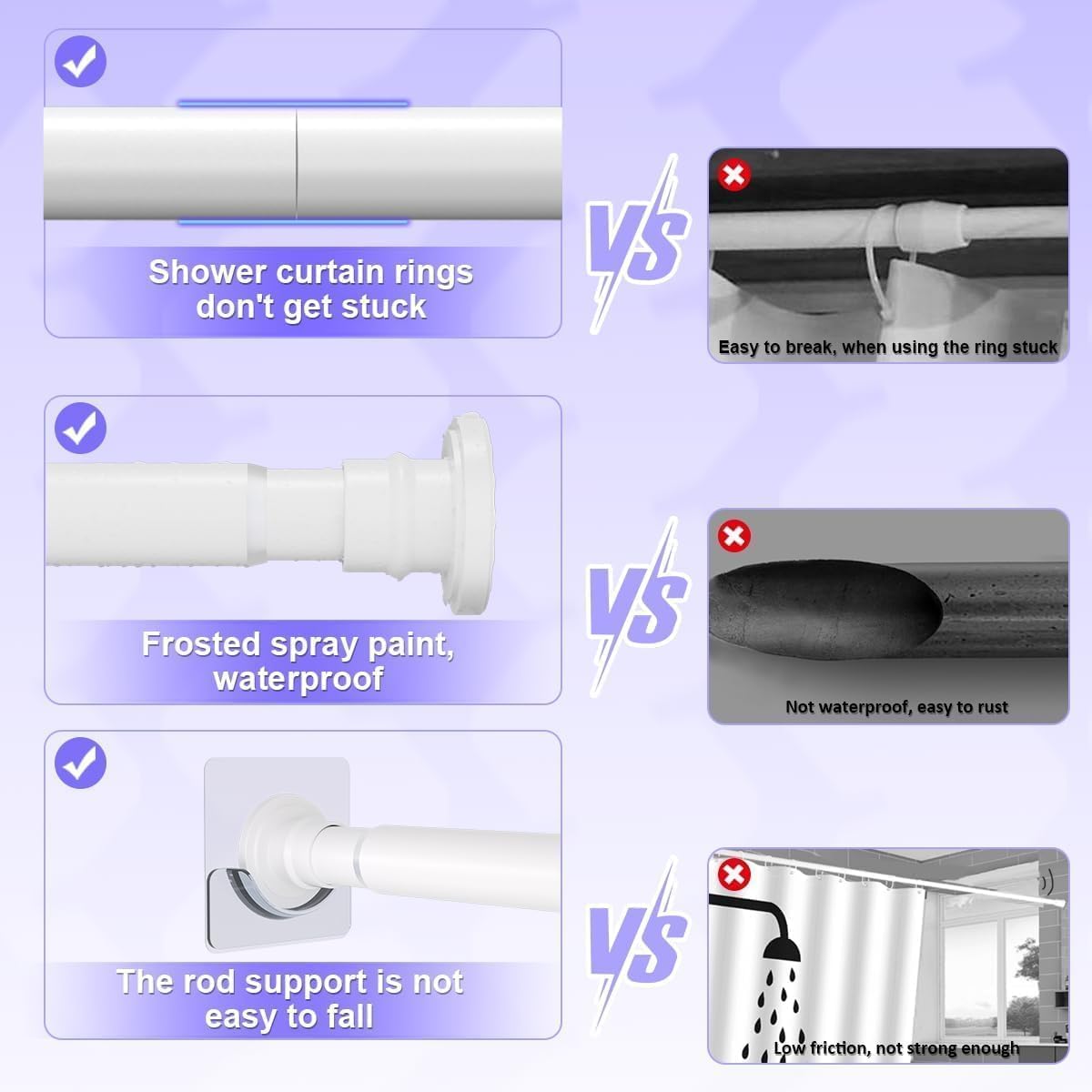 Upgrade your bathroom with the XYQIYY Shower Curtain Rod that delivers a reliable and efficient solution for your needs! Designed for customer satisfaction, it incorporates feedback and user needs to create a user-friendly shower rod equipped with a new telescopic lock design. This advanced mechanism offers high tension, ensuring the curtain rod remains firmly fixed in place, eliminating the possibility of slips. Made from stainless steel with a high-quality powder coating, our shower rod is exceptionally durable, resistant to rust, and aesthetically appealing. With XYQIYY Shower Curtain Rod, you get a long-lasting, sturdy solution that is both functional and stylish, suit for any modern bathroom!