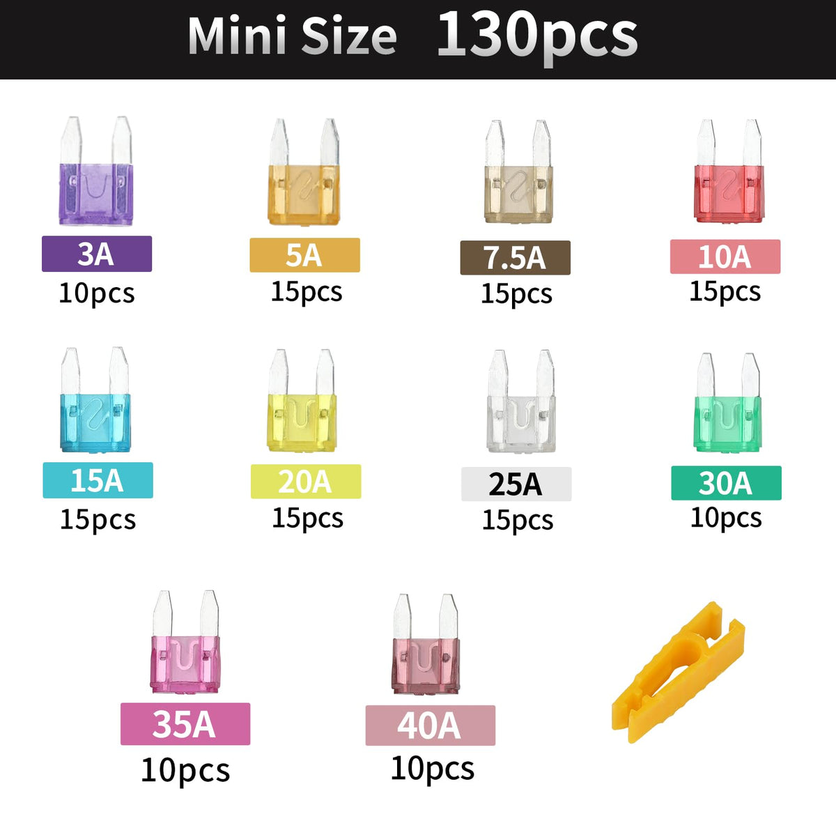 Xjlsgxusg 130 Pcs Mini Fuses Kit, Blade Fuse Assortment Kit(3A/5A/7.5A/10A/15A/20A/25A/30A/35A/40A) (With Puller Tool) For Car,