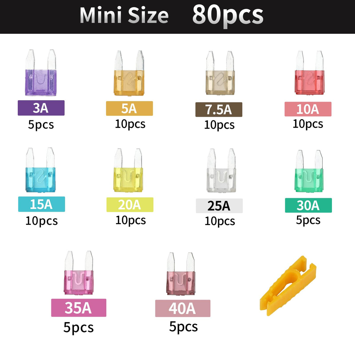 Xjlsgxusg 80 Pcs Mini Fuses Kit, Blade Fuse Assortment Kit(3A/5A/7.5A/10A/15A/20A/25A/30A/35A/40A) (With Puller Tool) For Car, M