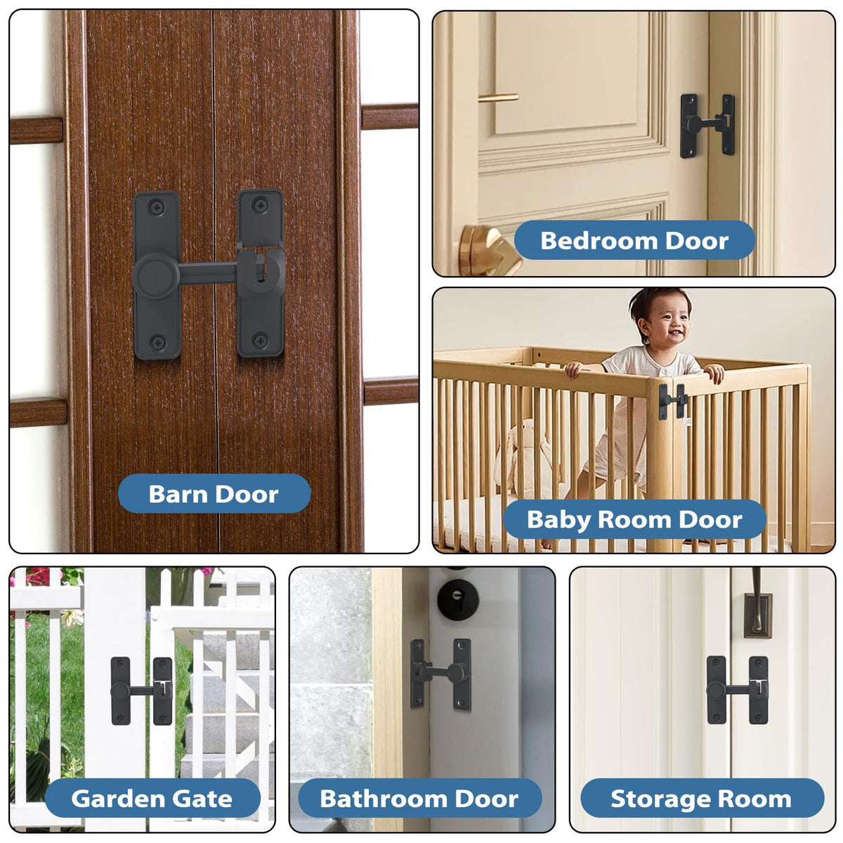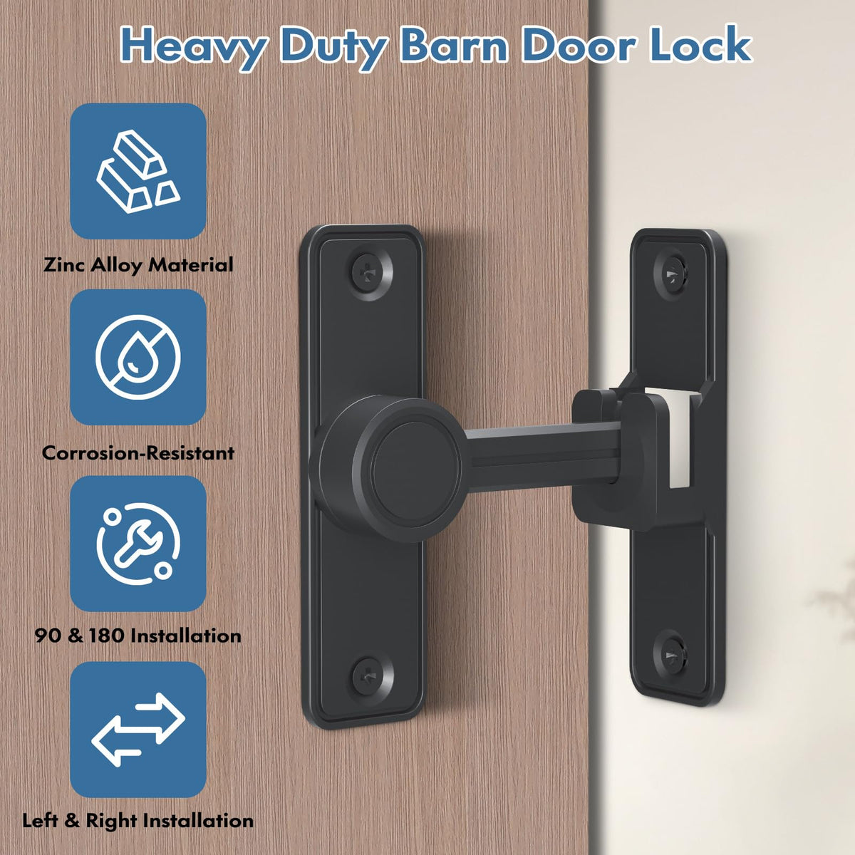 XOOL Barn Door Lock Latch, 90 & 180 Degree Heavy Duty Barn Door Latch, Lock Latch for Door, Garden, Bathroom, Garage, Window, Outdoor, Garage, Barn