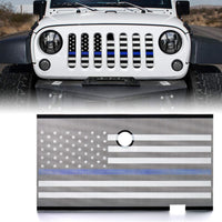Xprite Aluminum Alloy Grill Mesh Insert Law Enforcement Blue Stripe With Hood Lock Hole Compatible With 2007-2018 Jeep Wrangler