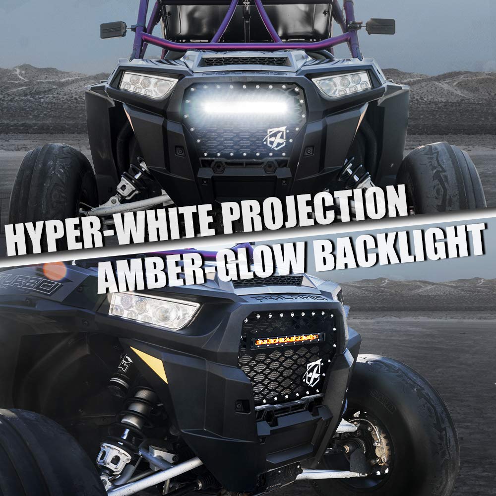 Xprite Black Steel Front Mesh Grille With 60W Led Amber Light Bar For 2017-2018 Polaris Rzr 1000 Xp Turbo