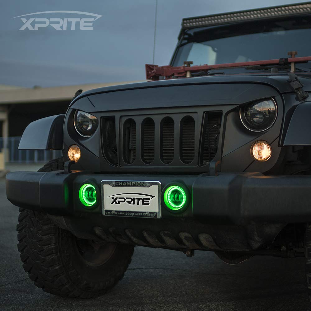 Xprite Fog Lights W/Green Halo Ring Angle Eye Drl, 4 Inch Foglights Compatible With 07-18 Jeep Wrangler Jk, 60W Led Front Bumper