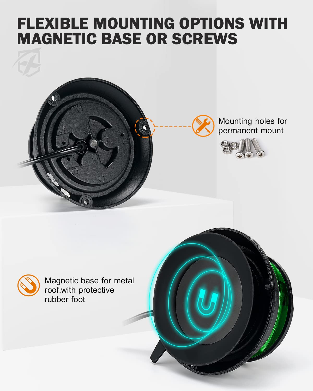 Xprite Green LED Rotating Beacon Light Rooftop Forklift Strobe Warning Revolving Flashing Lights for Construction Security Patro
