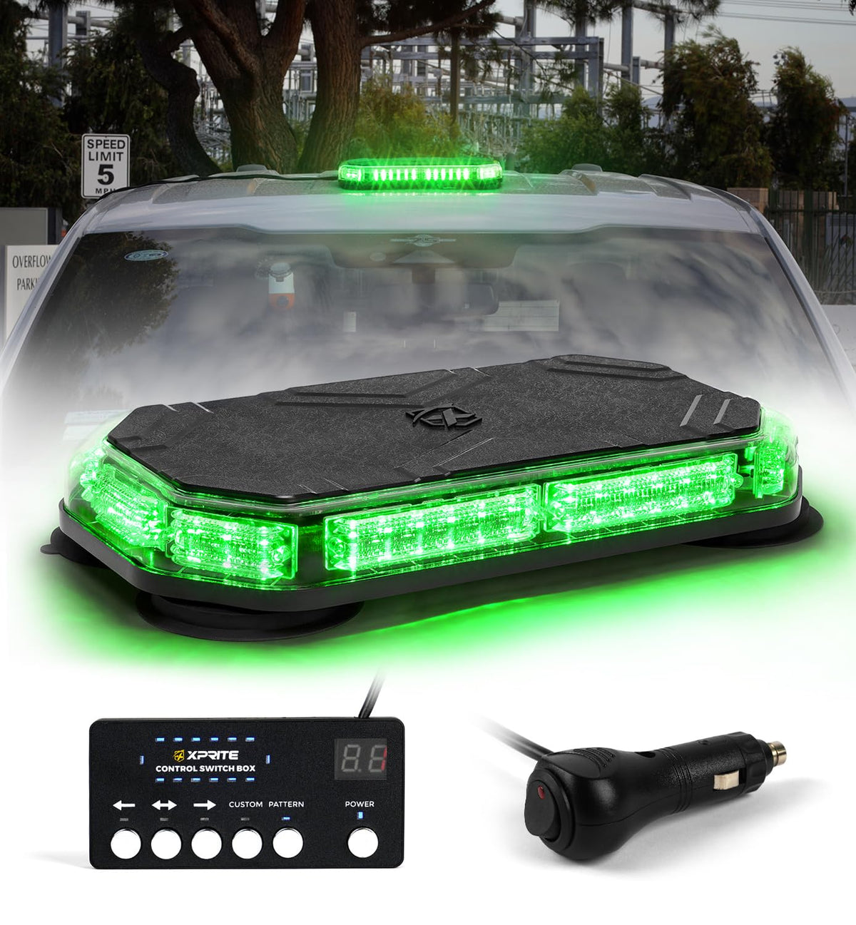 Xprite Green LED Strobe Lights Bar, Magnetic Mount Emergency Safety Warning Caution Flashing Plow Light, for Law Enforcement POV Vehicles Tow Trucks Cars