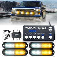 Xprite Led Surface Mount Strobe Lights Kit, White Amber Grill Grille Emergency Warning Marker Flashing Light With Control Box Fo