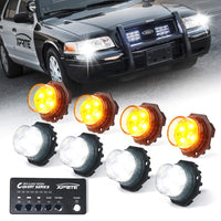 Xprite White Amber Led Hideaway Strobe Lights Kit 20 Flashing Patterns W/Control Panel Headlights Taillights Fog Light Mounting,