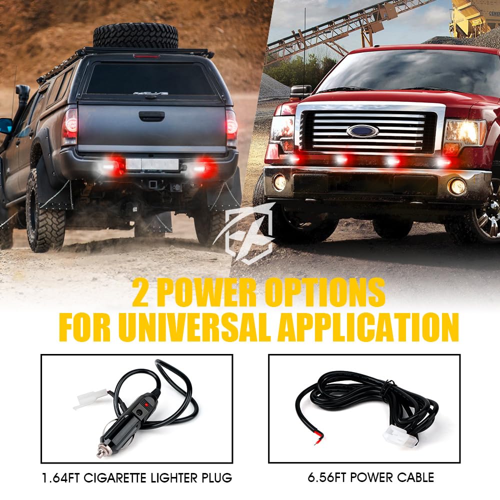 ?FEATURES? Our Tactical Series grille/marker strobe lights showcases an Ultra-Thin flush mount design, super bright lighting, and more eye-catching patterns to improve visibility and performance. | ?SUPER BRIGHT?12 High intensity LED chips with a flood lens provides maximum coverage and offers high visibility in day or night. Excellent brightness to improve better safety and security. | ?QUICK SELECT CONTROL SYSTEM? Upgraded design, Easy to switch between 16 different strobe and 3 buttons for directional patterns, with last pattern memory recall function. | ?HIGH-QUALITY? LED light head have an aluminum alloy base & durable PC Lens. Encapsulated electronics that are protected from outside elements, designed to withstand harsh weather conditions.(If the surface is not flat, extra clear silicone is recommeded) | ?EASY TO INSTALL? Protective mounting gaskets and screws are included for easy installation. Directly plugs into any vehicle with a standard 12V cigarette port. NOTE: 10FT Extension Cable Wire is Sold Separately, ASIN: B07XRQJTB2