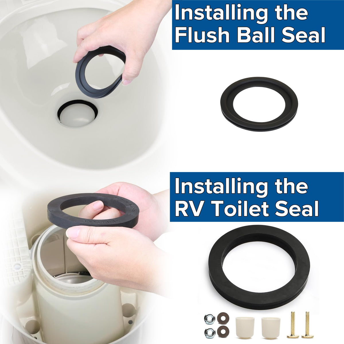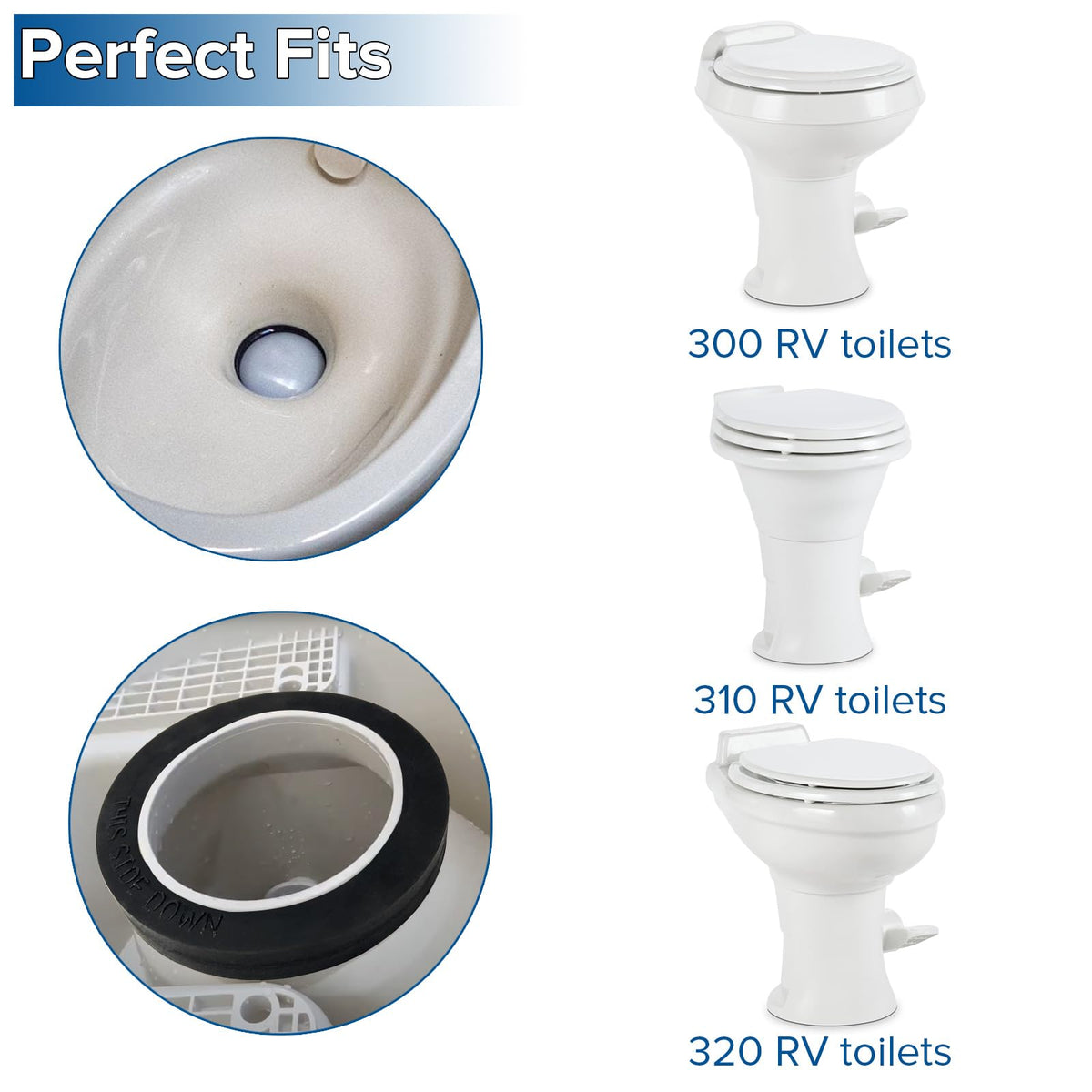 Characteristic: 385311652 rv toilet seal and 385311658 rv toilet flush ball seal perfect fits 300, 310 and 320 series toilet, can effectively avoid the occurrence of water leakage. Suggestion: Please clean up the rim and bowl area where the old seal was before replacing.