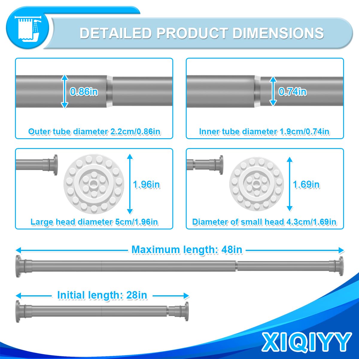 Q: What is the adjustable range of the XQIYY Shower Curtain Rod?A: The XQIYY Shower Curtain Rod can be adjusted from 28 inches to 48 inches, making it versatile for various spaces.